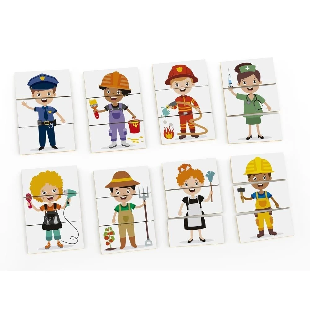 Inclui: 24 peças em MDF (formam 8 profissões)