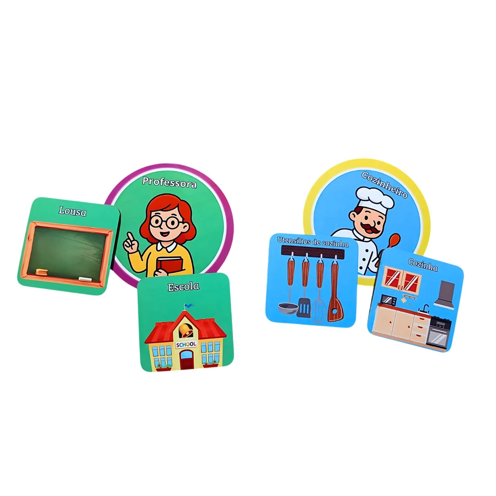 Com cores vibrantes e um design atrativo, ele chama a atenção das crianças e as convida a mergulhar em um universo de possibilidades, descobrindo diferentes profissões e compreendendo, de forma simples e divertida, como elas fazem parte do nosso dia a dia. É um recurso inclusivo que valoriza o brincar como ferramenta de desenvolvimento, ampliando horizontes e despertando sonhos.