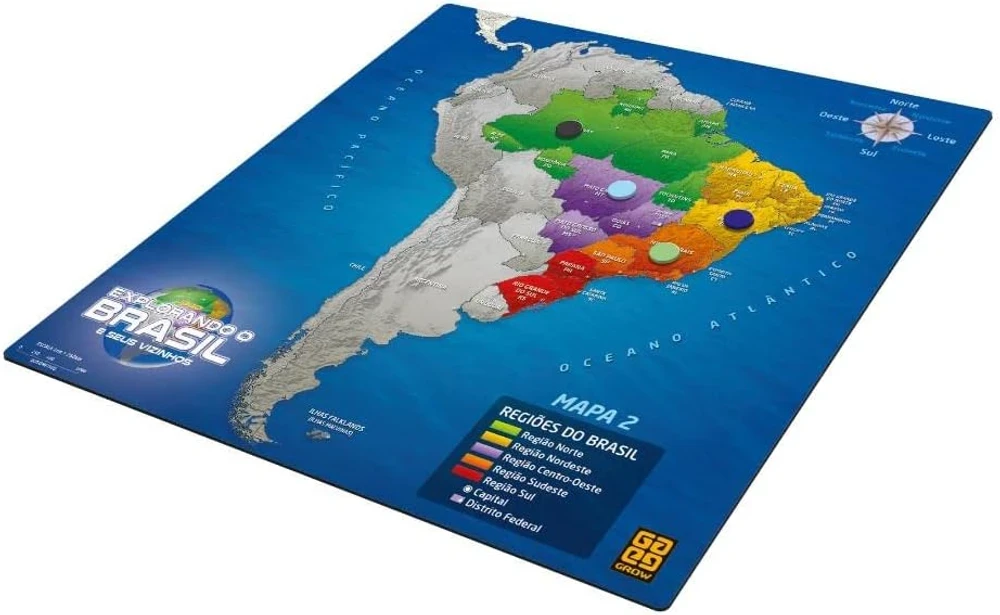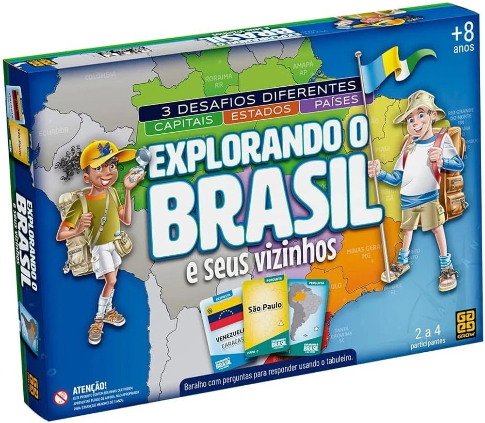 O Jogo Explorando o Brasil da Grow é uma maneira divertida e educativa de conhecer as regiões, cidades e curiosidades do país. Durante a brincadeira, os jogadores respondem perguntas e completam desafios que estimulam raciocínio, memória e conhecimento geográfico. Ideal para toda a família, o jogo transforma aprendizado em diversão, incentivando a interação entre crianças e adultos enquanto explora cultura, história e diversidade do Brasil de forma leve e envolvente.