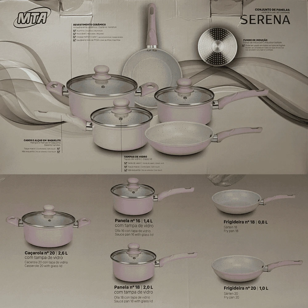 Eleve o padrão das suas receitas com a linha MTA Serena, onde a tecnologia de indução se encontra com um acabamento premium de tirar o fôlego. Este jogo não apenas prepara alimentos; ele decora o seu ambiente e otimiza o seu tempo na cozinha com uma distribuição de calor sem precedentes.