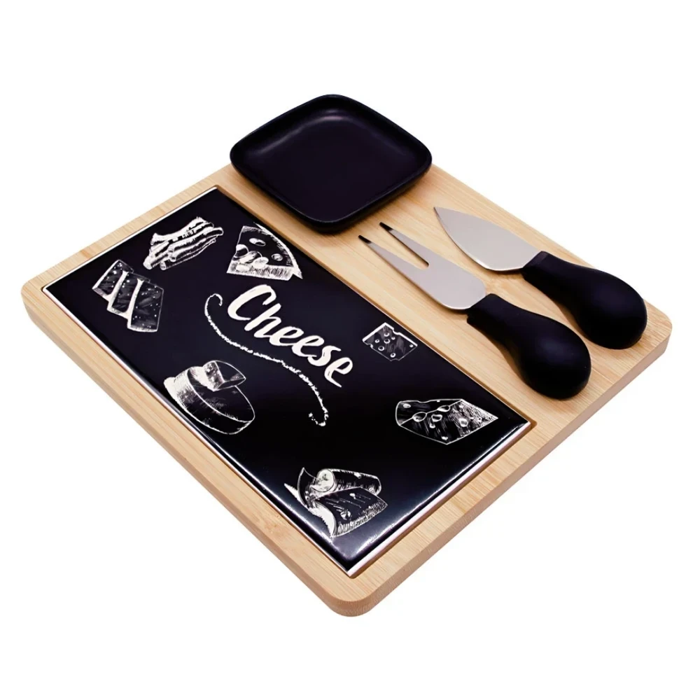 Cada peça apresenta acabamento em cerâmica e base em bambu, proporcionando durabilidade e beleza. Com dimensões aproximadas de 20x22x3,3cm, o jogo é ideal para apresentar diferentes tipos de queijos, petiscos e frios de forma organizada e charmosa.