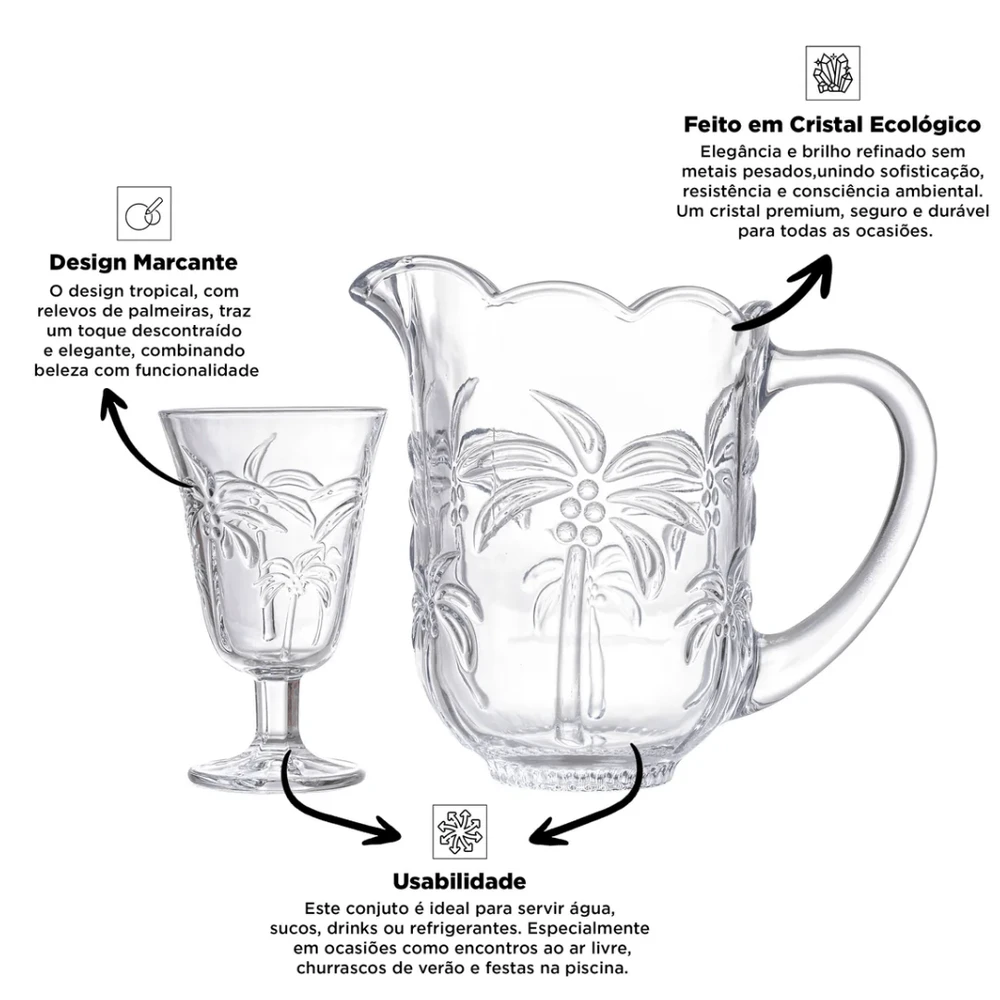 Composição Completa: O conjunto conta com 1 Jarra imponente e 6 Copos robustos, perfeitamente coordenados para servir seus convidados com harmonia e elegância.