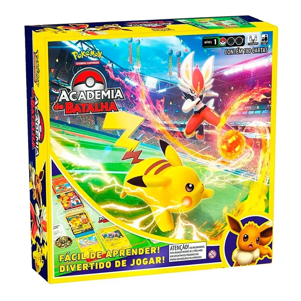 O Jogo Pokémon Academia de Batalha Copag é perfeito para iniciar batalhas estratégicas, estimular o raciocínio e a diversão entre amigos e familiares.