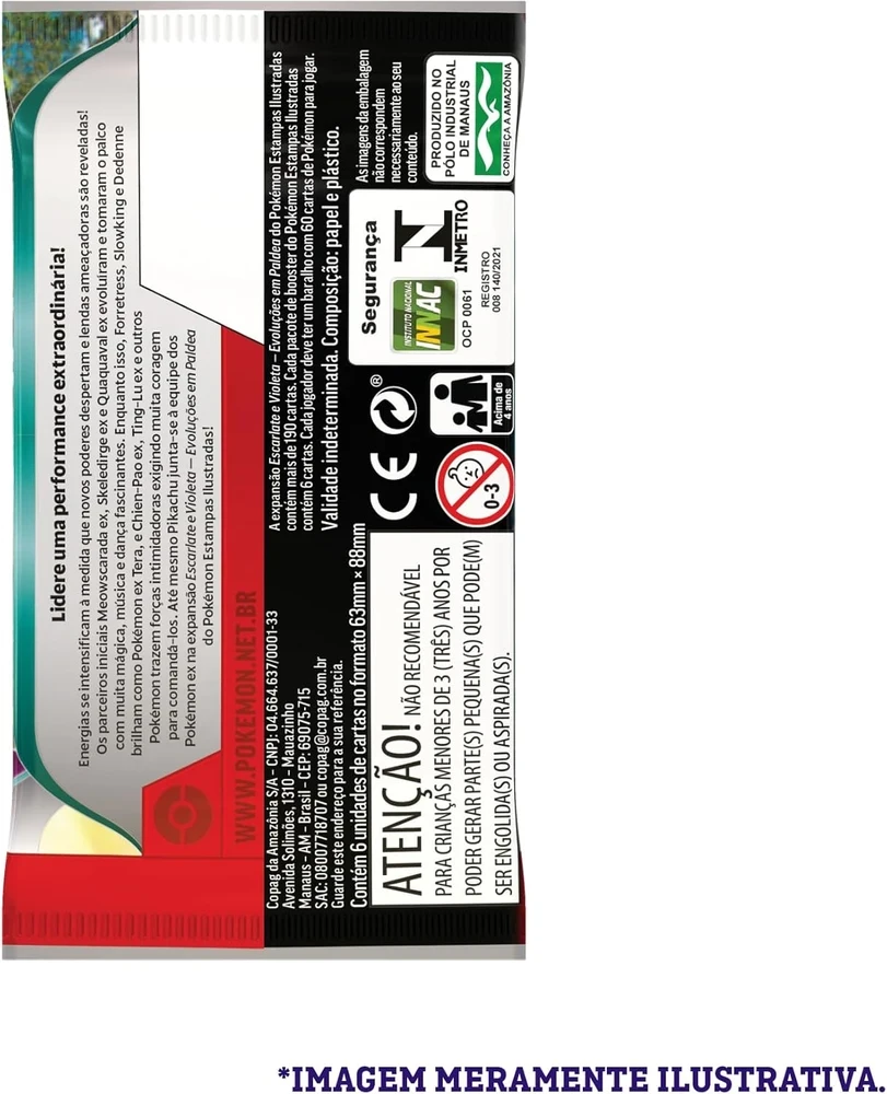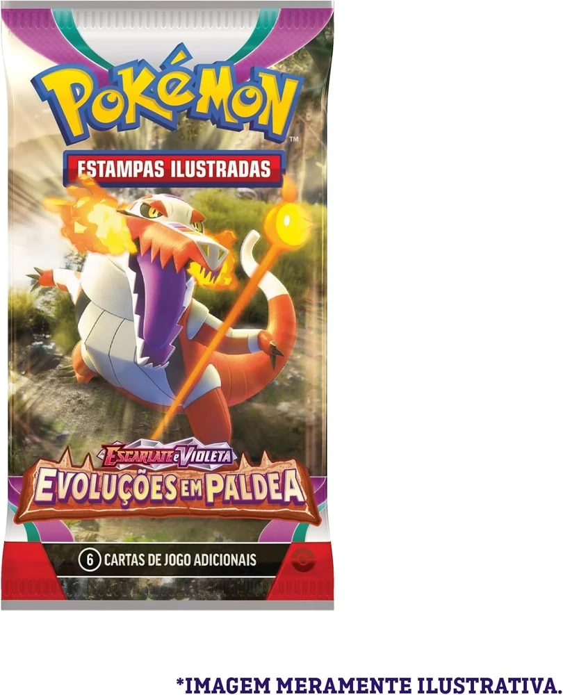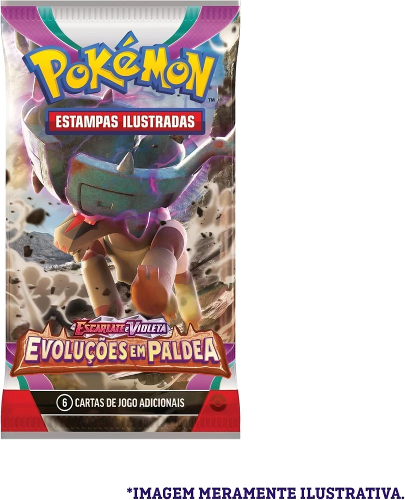Conteúdo da embalagem: 1 booster Pokémon Evoluções em Paldea com cartas sortidas