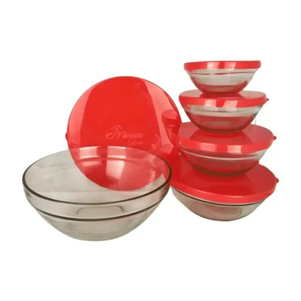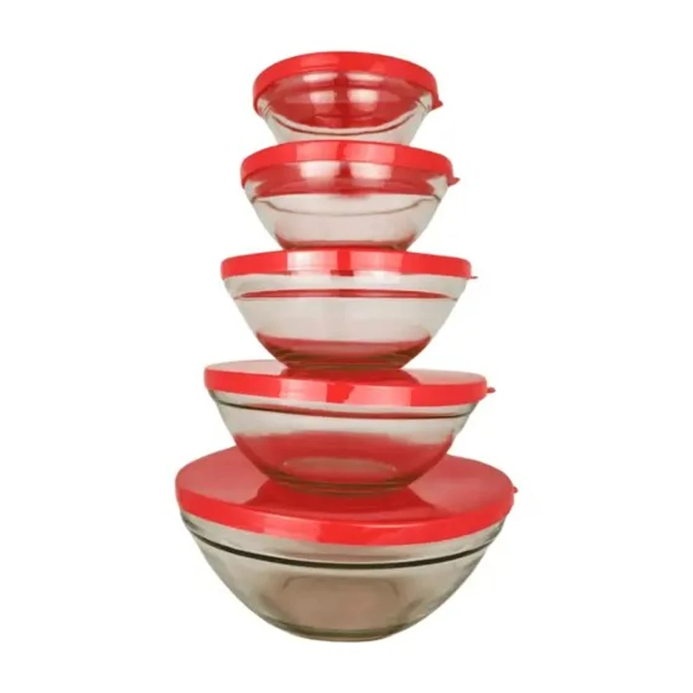 Jogo de Potes Tigelas 5 Peças de Vidro Tampa Plástico Bowls