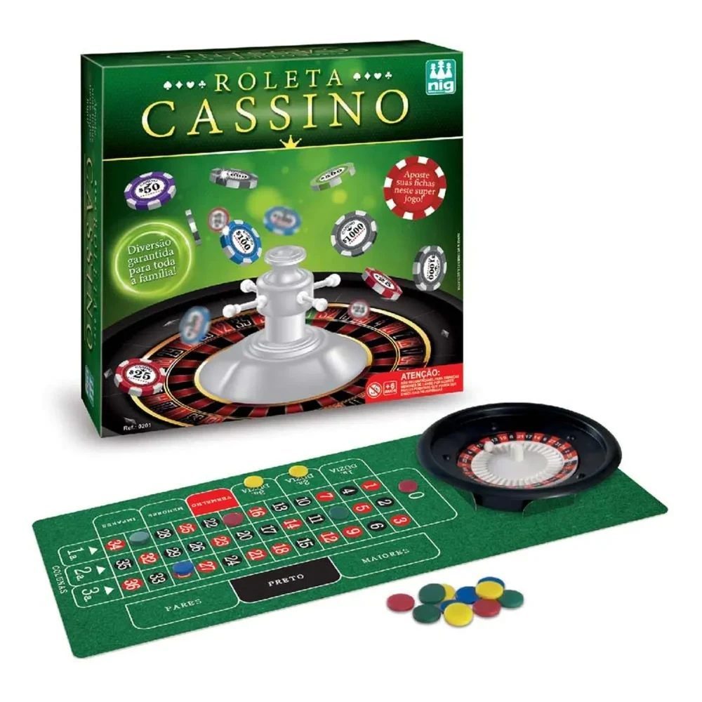 O Jogo Roleta Cassino da NIG traz toda a emoção de um cassino para dentro de casa, proporcionando momentos de diversão para toda a família e amigos. Com regras fáceis de aprender, ele permite apostas, giros da roleta e muita interação, estimulando a estratégia, a atenção e o raciocínio lógico. Ideal para crianças mais velhas e adultos, o jogo transforma qualquer encontro em uma experiência divertida e envolvente, com a sensação de jogar em um verdadeiro cassino.
