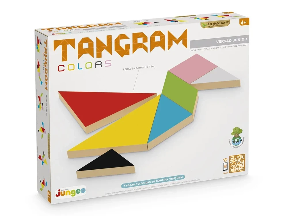 Jogo Tangram Colors Junges O Tangram Colors da Junges é perfeito para estimular a criatividade, o raciocínio lógico e a percepção espacial das crianças. Com 7 peças coloridas em madeira de MDF de 9 mm, que formam um quadrado de 12 x 12 cm, o jogo permite criar inúmeras figuras e combinações. Acompanha gabaritos impressos na embalagem com cores, facilitando o aprendizado e incentivando a imaginação dos pequenos de forma divertida e educativa. Especificações: Marca: Junges Idade recomendada: a partir de 5 anos Material principal: madeira MDF Dimensões: 12 x 12 cm Conteúdo da embalagem: 7 peças coloridas, gabaritos impressos Com o Jogo Tangram Colors Junges, a diversão se transforma em aprendizado, ajudando as crianças a desenvolverem habilidades cognitivas e criatividade de maneira lúdica e envolvente!