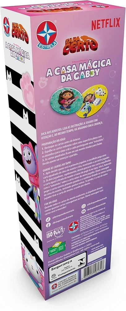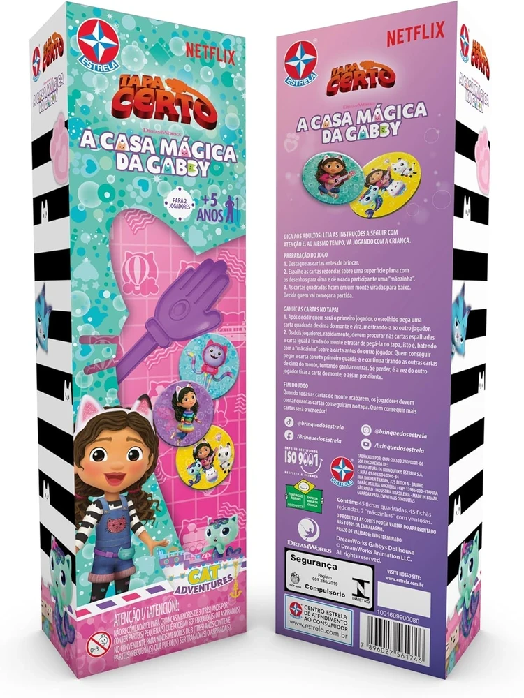 O Jogo Tapa Certo Casa Mágica da Gabby da Estrela leva as crianças direto para o universo encantado da série, transformando cada rodada em uma aventura cheia de alegria. Com cartas ilustradas dos personagens e elementos da Casa Mágica, os jogadores precisam ficar atentos e rápidos para dar o “tapa certo” na imagem correspondente. A brincadeira estimula reflexo, concentração e percepção visual, além de garantir muitas risadas e momentos de interação entre amigos e familiares. A proposta é simples, leve e perfeita para envolver os pequenos em um jogo divertido e cheio de encanto.