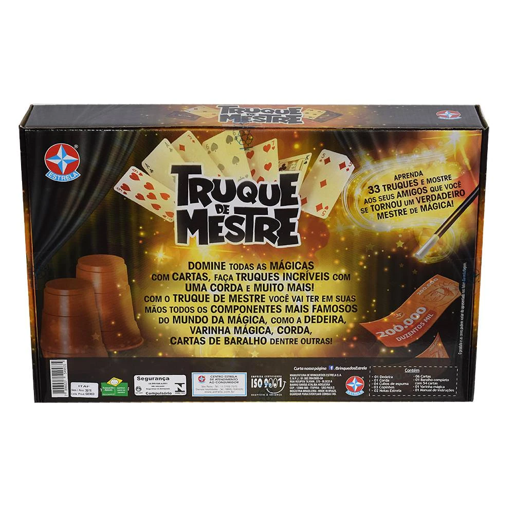 A criançada vai aprender a dar um show de mágica com o Conjunto de Mágicas Truque de Mestre da Estrela. Um kit completo para a garotada fazer truques incríveis para a família e os amiguinhos. O conjunto vem com baralho de cartas, acessórios para fazer mágicas e um manual de instruções.