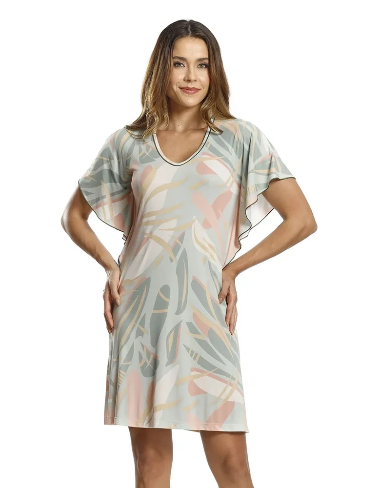 A kaftan liganete fechada Folhagem Paulienne é uma peça versátil que combina conforto e elegância. Confeccionada em liganete, proporciona toque suave e caimento impecável, enquanto a gola em V e a manga evasê criam um efeito solto e esvoaçante, conferindo charme ao visual. A estampa de folhagem, aplicada por sublimação na frente e nas costas, mantém acabamento delicado e sem toque, garantindo sofisticação e leveza.