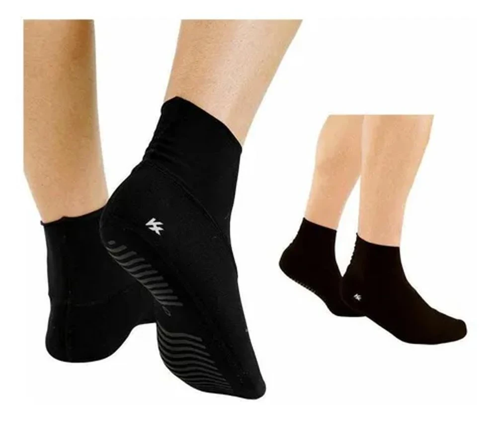 Barreira contra areia: O tecido em elastano no tornozelo impede a entrada de areia, proporcionando uma experiência de uso mais agradável e sem interrupções.