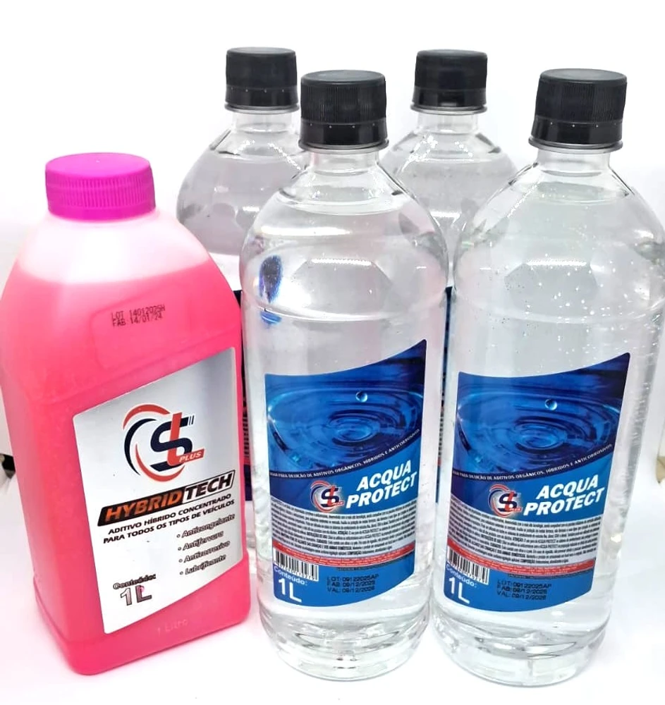 KIT 01 ADTIVO CONCENTRADO HÍBRIDO ROSA E 04 AGUAS COM INIBIDOR DE CORROSÃO PARA DILUIÇÃO