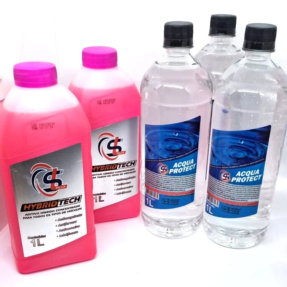 KIT 02 ADTIVOS CONCENTRADO HÍBRIDO ROSA E 03 AGUAS COM INIBIDOR DE CORROSÃO PARA DILUIÇÃO