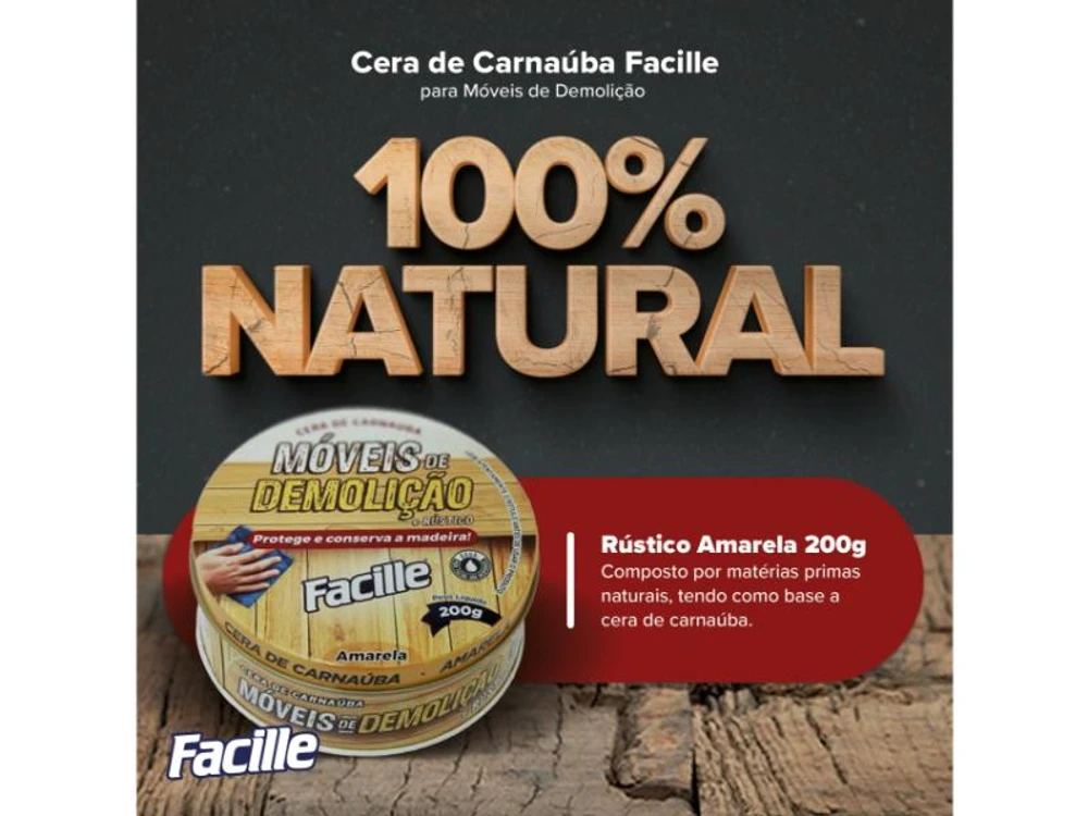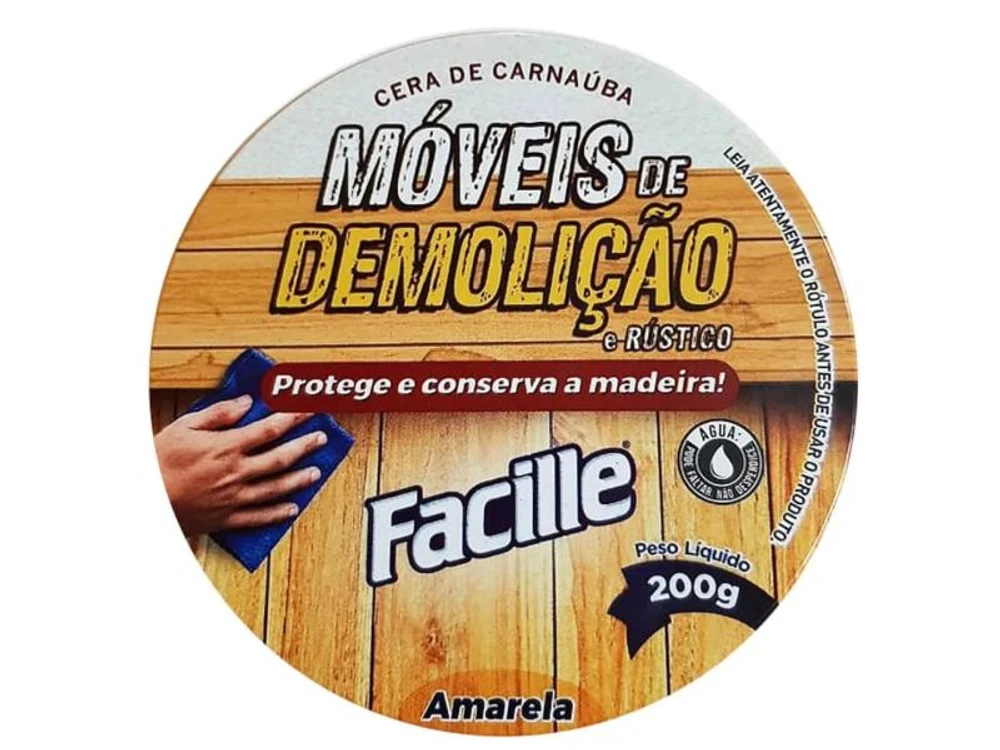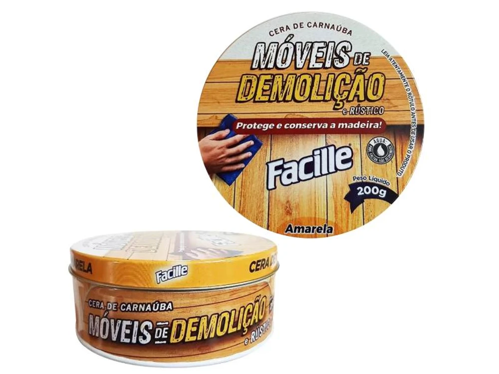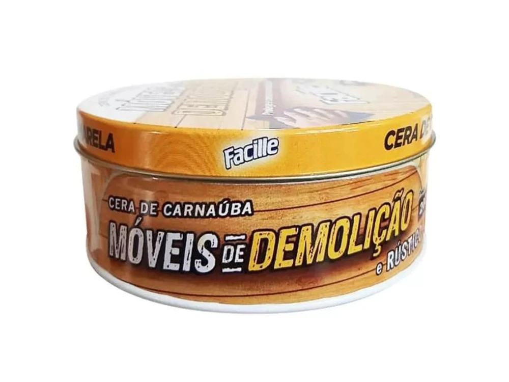 Cera de Carnaúba para Móveis de Demolição e Rústico 200g O produto é composto por matérias primas naturais, tendo como base a cera de carnaúba que cria uma camada protetora conservando o aspecto natural da madeira por mais tempo. Fácil aplicação e efeito prolongado contra manchas de líquidos, chuvas, excesso de exposição ao sol e risco em geral