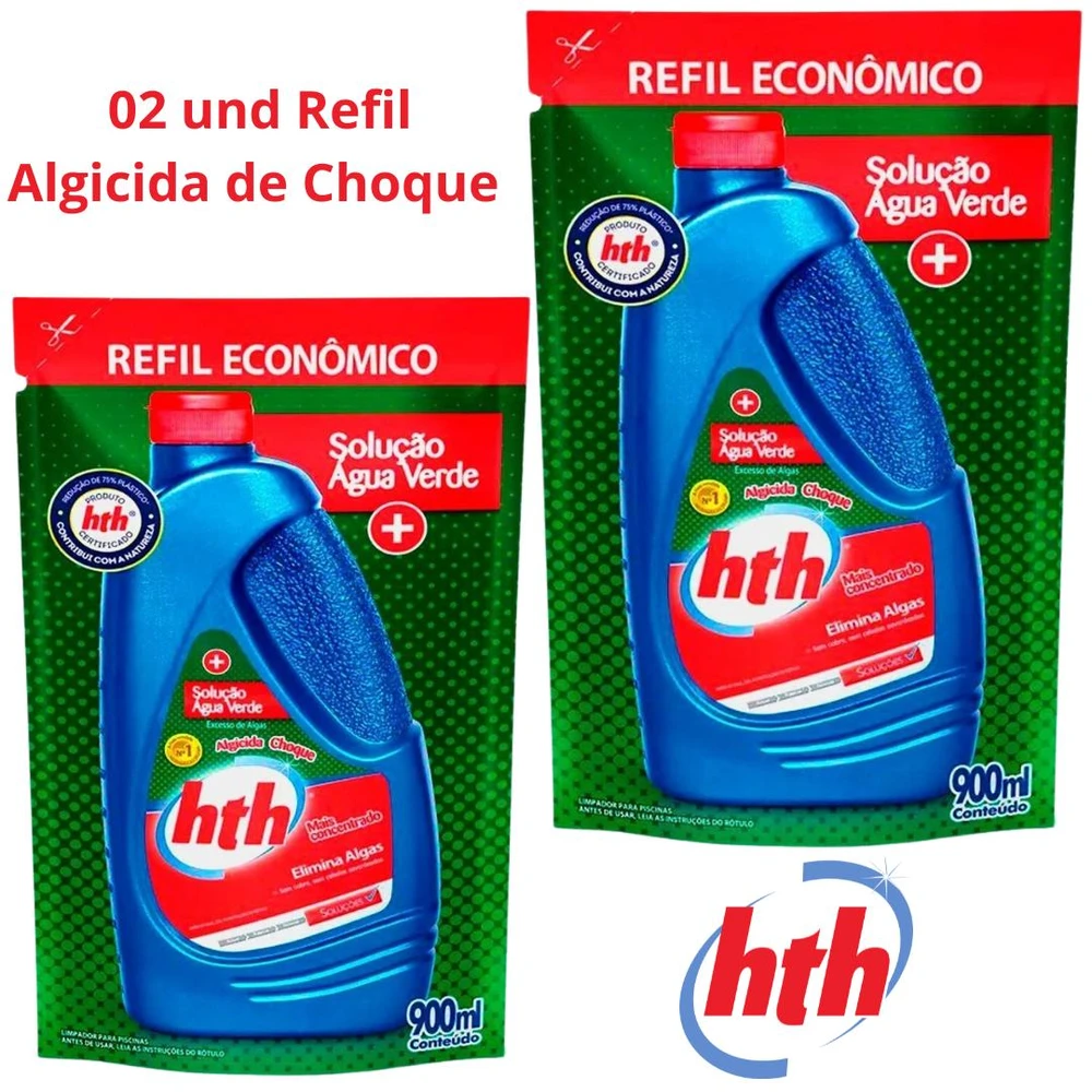 Kit 02 HTH Algicida Choque Solução Água Verde 900ml