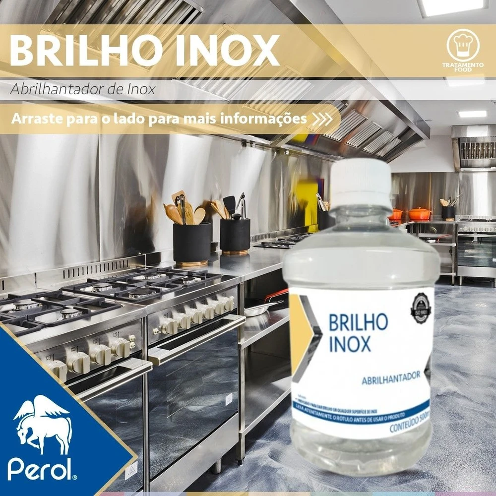 Indicado para dar brilho em qualquer superfície de inox. Forma uma película protetora e facilita limpezas posteriores.