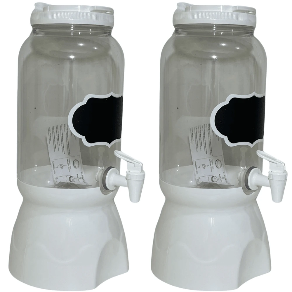 Este kit com 2 unidades de suqueiras de 3,6 litros possui base branca resistente e painel lousa para personalização, facilitando a identificação da bebida.