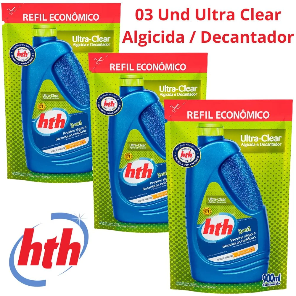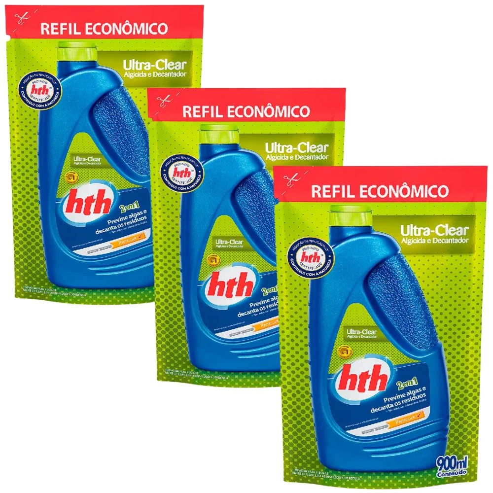 KIT 03 UND REFIL SACHE 900ML ALGICIDA CHOQUE SOLUÇÃO AGUA VERDE