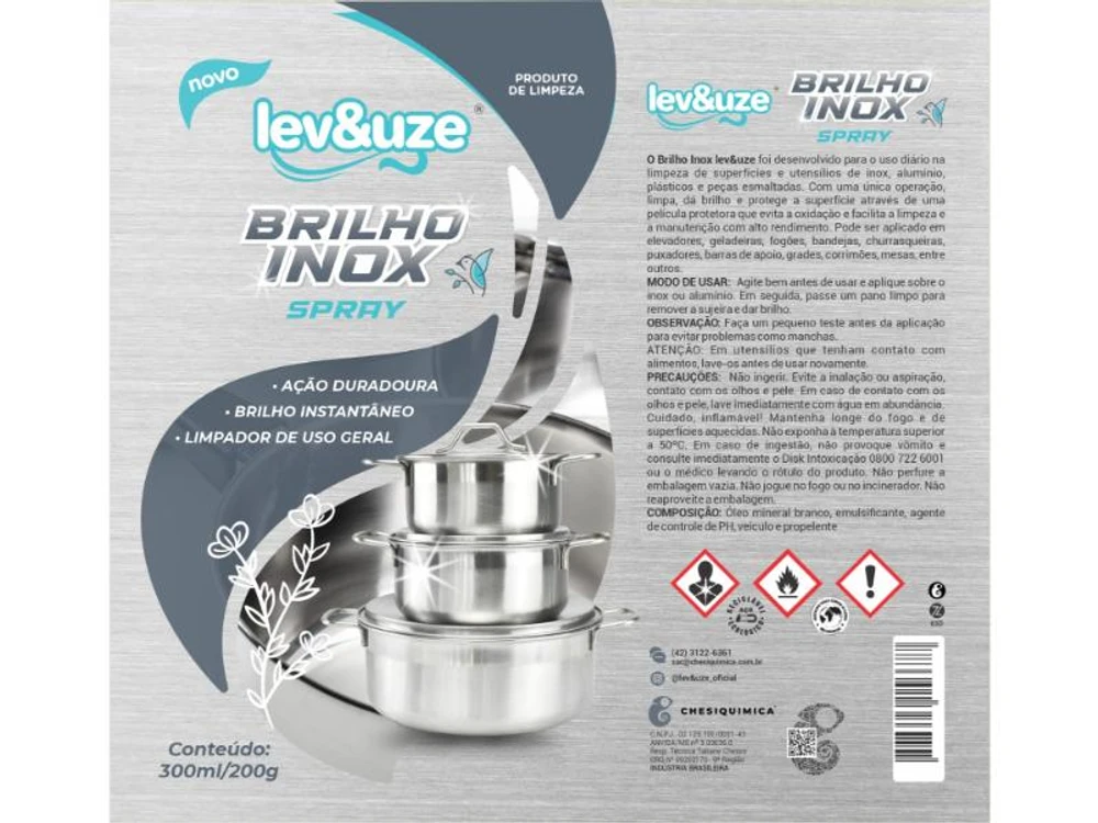 Cuide do Que é Seu com a Qualidade Lev&uze: Invista em um produto que entende as suas necessidades e que proporciona um resultado impecável em todas as aplicações. Garanta já o seu Brilho Inox Spray Lev&uze e veja suas superfícies renovadas como nunca!