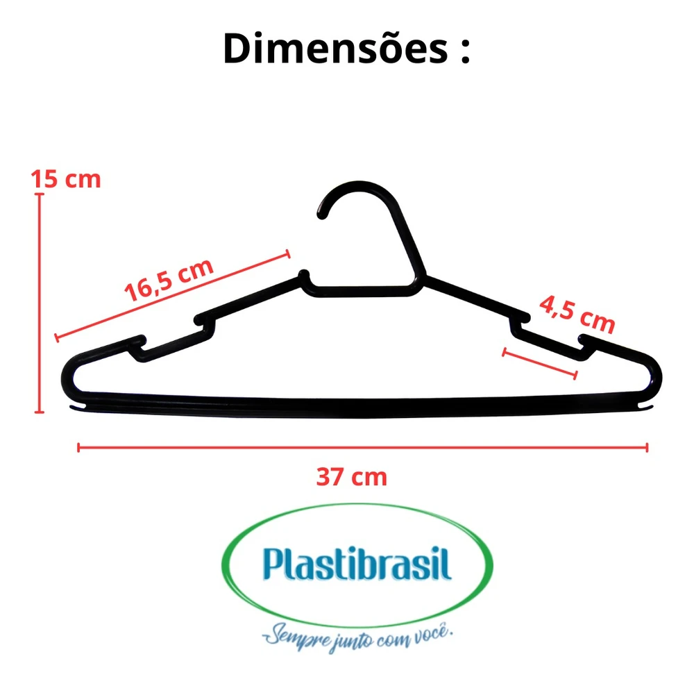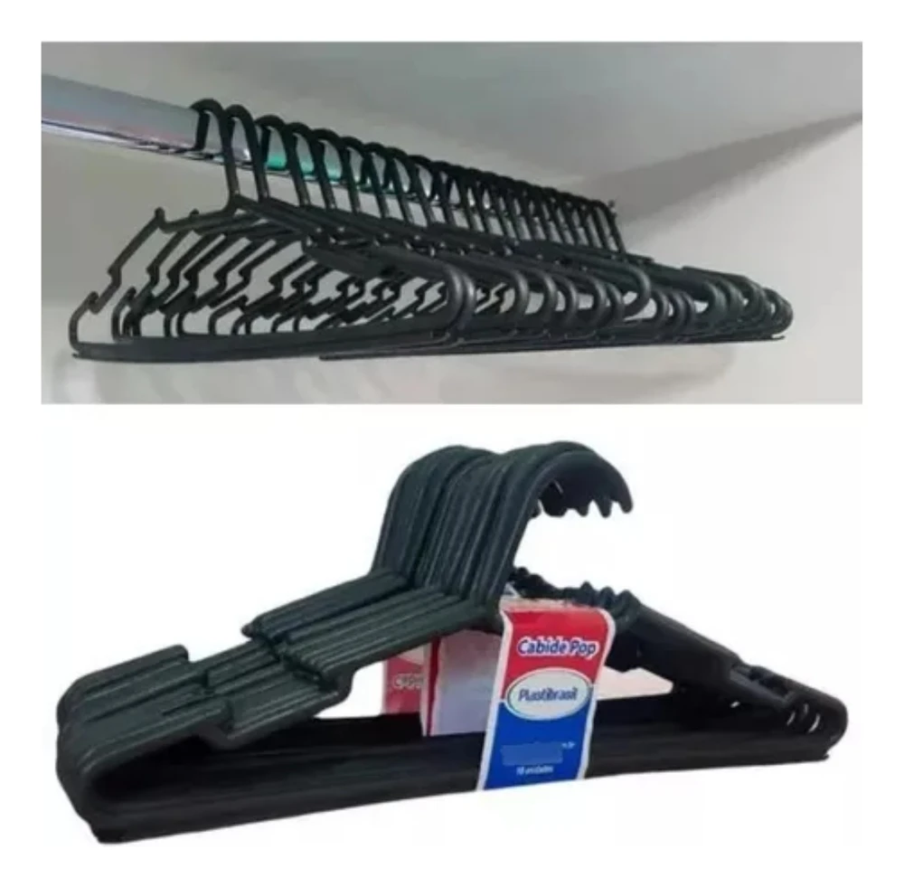 Kit 10 Cabides Adulto de Alta Qualidade!Renove seu guarda-roupa com nosso incrível Kit Cabide Adulto!Disponível na elegante cor Preto, para combinar com qualquer estilo!Feitos com materiais de alta qualidade, nossos cabides garantem durabilidade e resistência!Medindo 38,5x16 cm , são perfeitos para pendurar roupas de forma prática e segura!Aproveite agora e garanta o seu Kit Cabide! Organização e estilo para seu guarda-roupa!