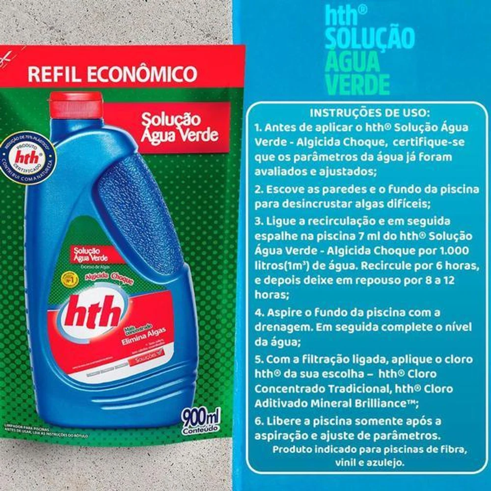 O hth® Solução Água Verde - Algicida Choque é um produto concentrado que elimina as algas de piscinas infestadas. Fórmula livre de cobre, não deixa manchas esverdeadas no cabelo e no revestimento.