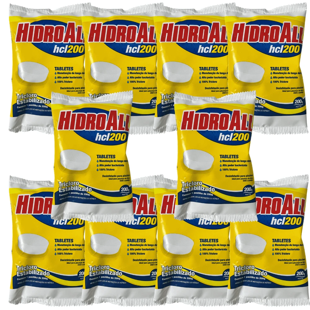🏆 O Combo do Dono de Piscina Inteligente: Kit 10 Pastilhas de Cloro hcl Hidroall 200g (2kg)