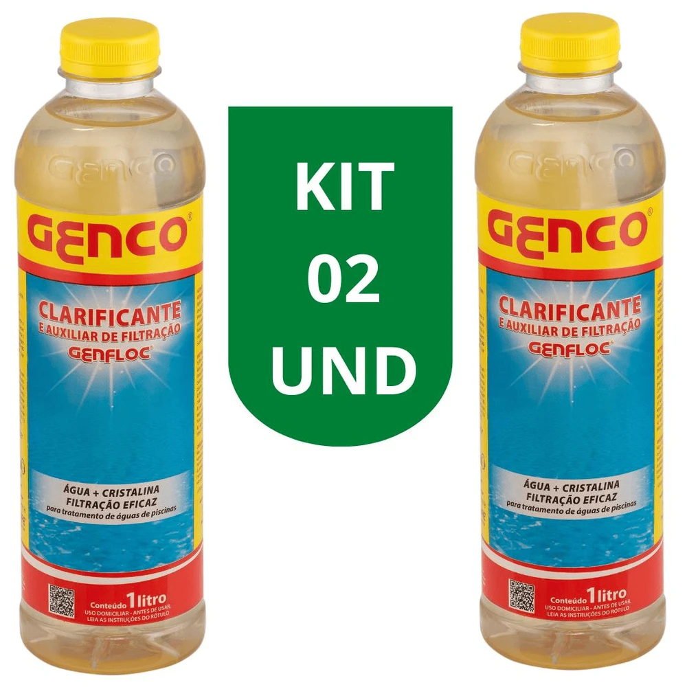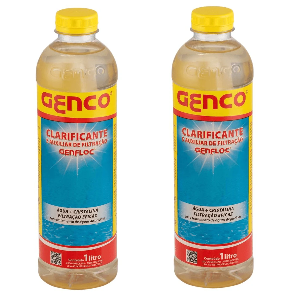 GENFLOC Clarificante e Auxiliar de Filtração GENCO® é um eficiente clarificante a auxiliar de filtração para águas de piscinas. Sua ação floculante atrai eletrostaticamente as partículas de sujeira que normalmente passariam pelo meio filtrante e forma com elas flóculos grandes que o filtro passa a reter. Isso aumenta o rendimento do filtro. Os flocos maiores e mais pesados decantam para o fundo da piscina de onde podem ser aspirados normalmente. O resultado é a clarificação completa da água.