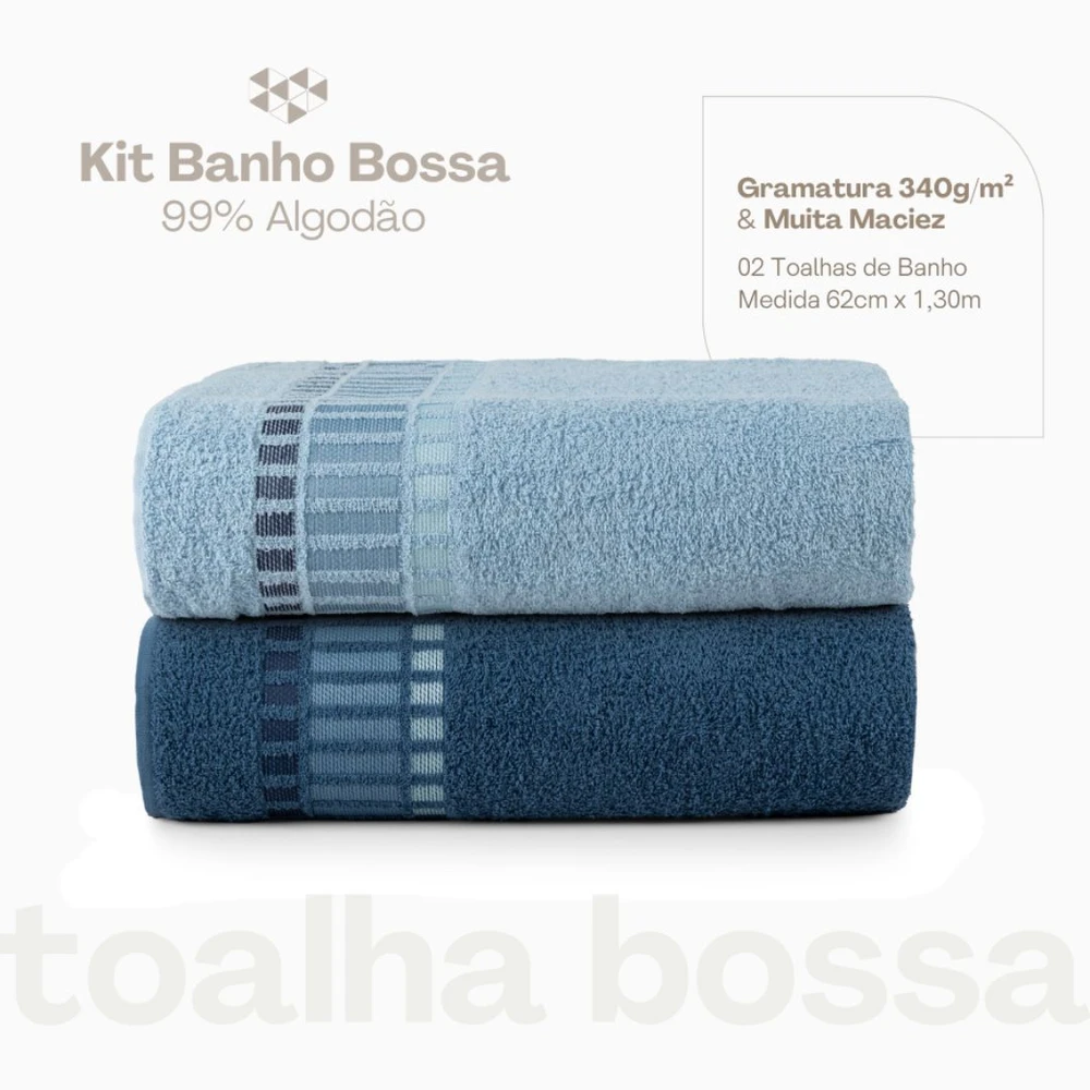 O Kit de Toalha de Banho Bossa oferece estilo e conforto para o seu dia a dia. Com barrado estiloso e composição em felpa 99% algodão e 1% poliéster, proporciona alta absorção e maciez no contato com a pele. Ideal para quem busca toalha de banho grande, grossa e de qualidade superior, é uma excelente opção tanto para uso pessoal quanto para presentear.