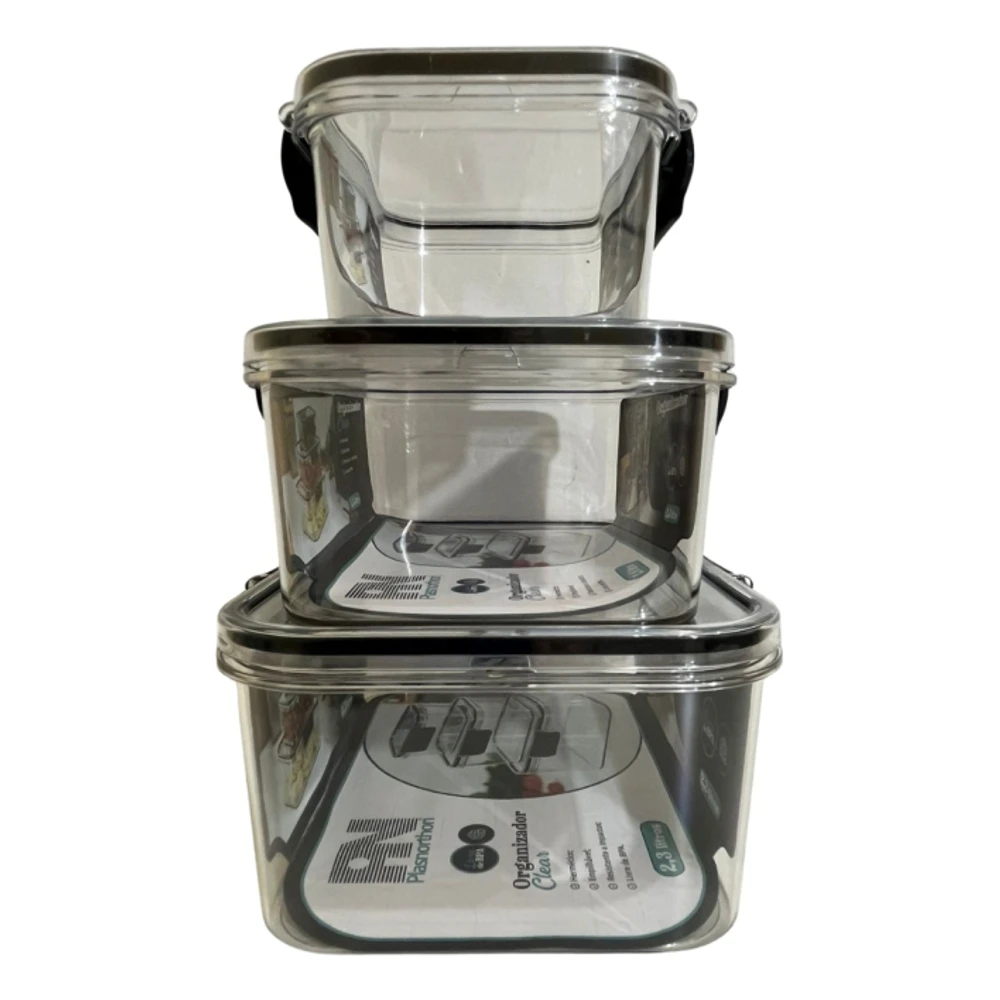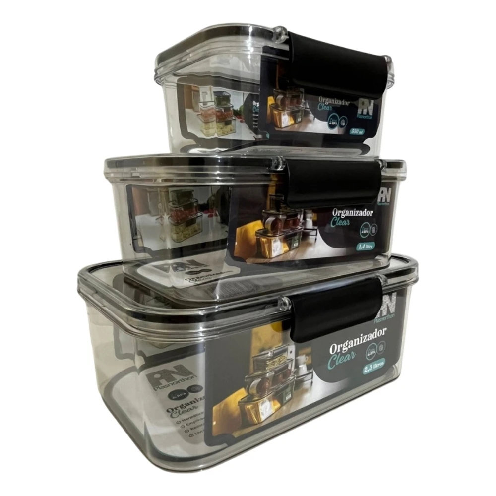 Adquira já o seu Kit C/ 3 Potes Herméticos Com Tampa De Vedação Retangular Cor Incolor e mantenha sua despensa organizada e seus alimentos frescos por mais tempo.