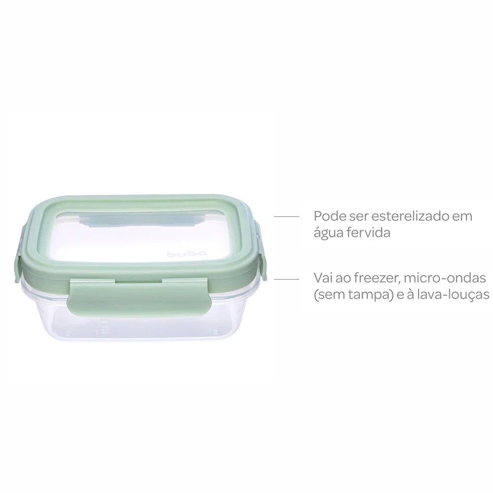 Com o Kit 3 Potinhos Herméticos Verde Buba, transportar e armazenar as refeições da criança se torna prático, seguro e organizado, facilitando a rotina e garantindo mais conforto para os pequenos!