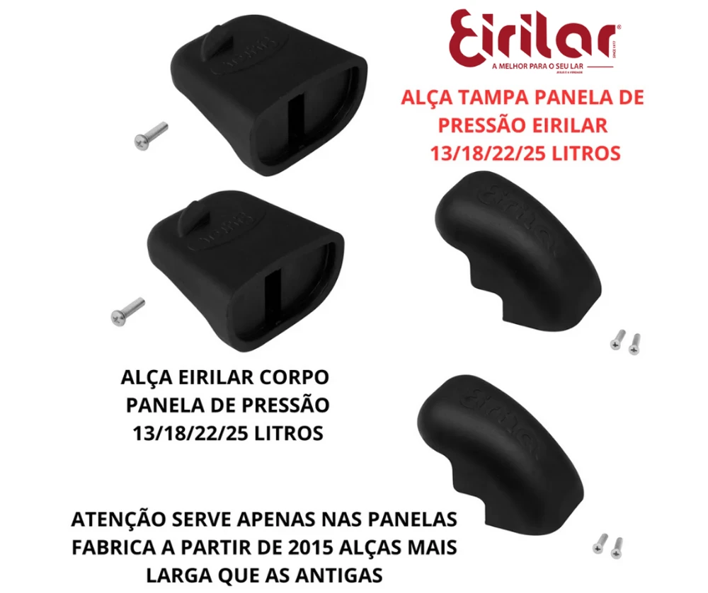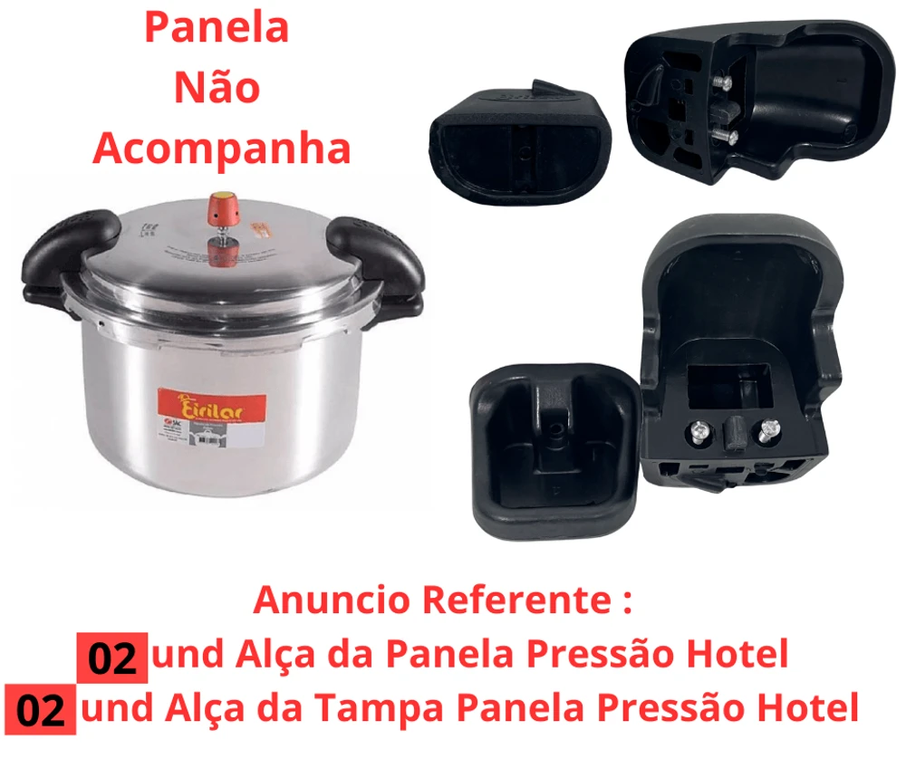 Com essas referências, é possível identificar e adquirir o Kit 4 Peças Alça Completa Panela De Pressão Industrial Eirilar específico para cada tamanho de panela de pressão industrial. As peças são fabricadas em material resistente e de alta qualidade, garantindo durabilidade e segurança na utilização das panelas de pressão industriais Eirilar.