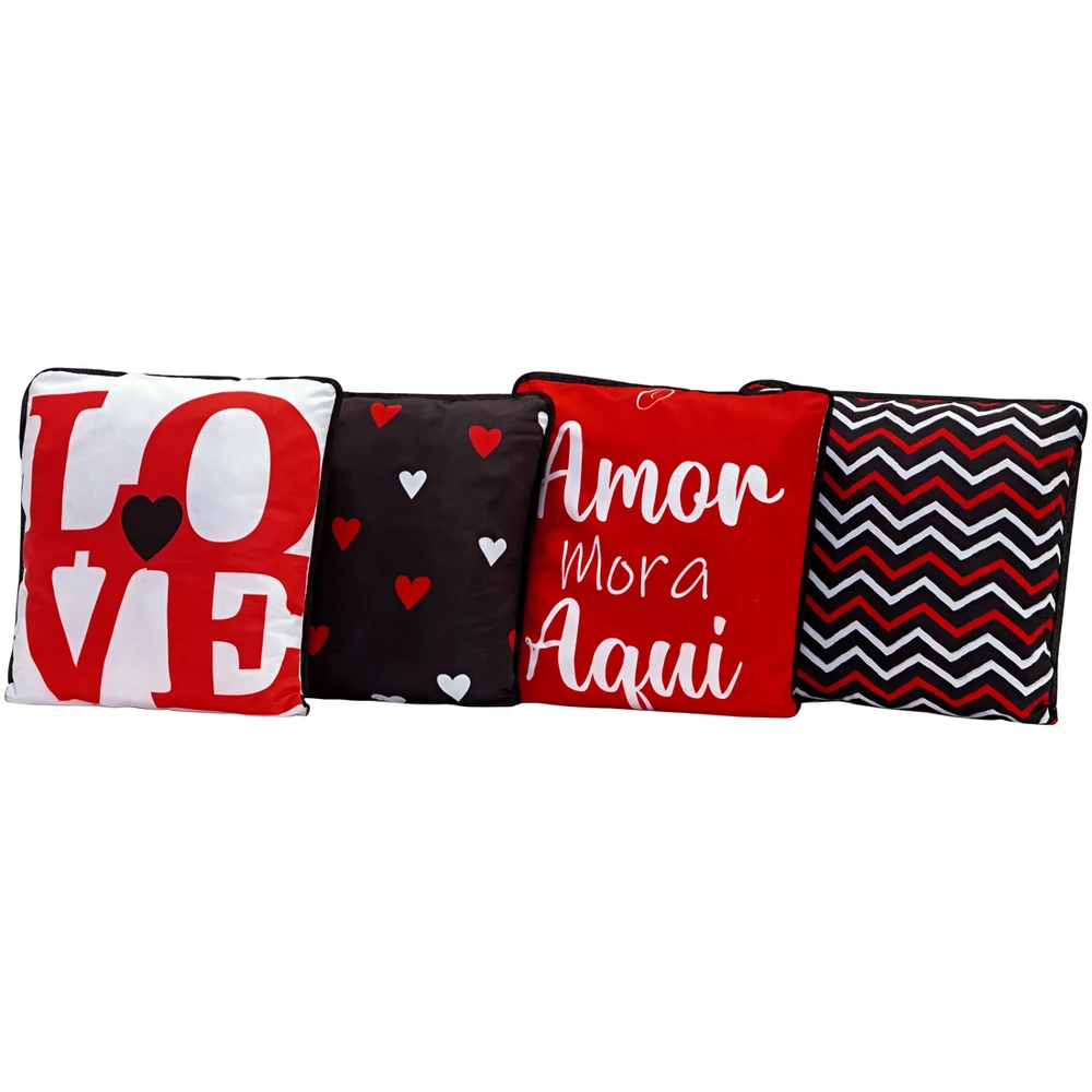 Kit 4 Capas de Almofadas Innovative Amor Mora Aqui 45cm x 45cm - Com Viés