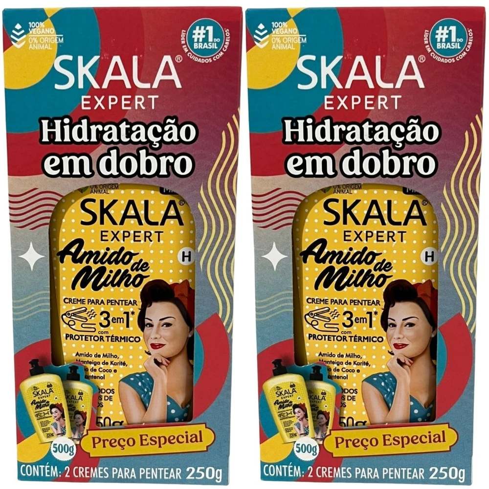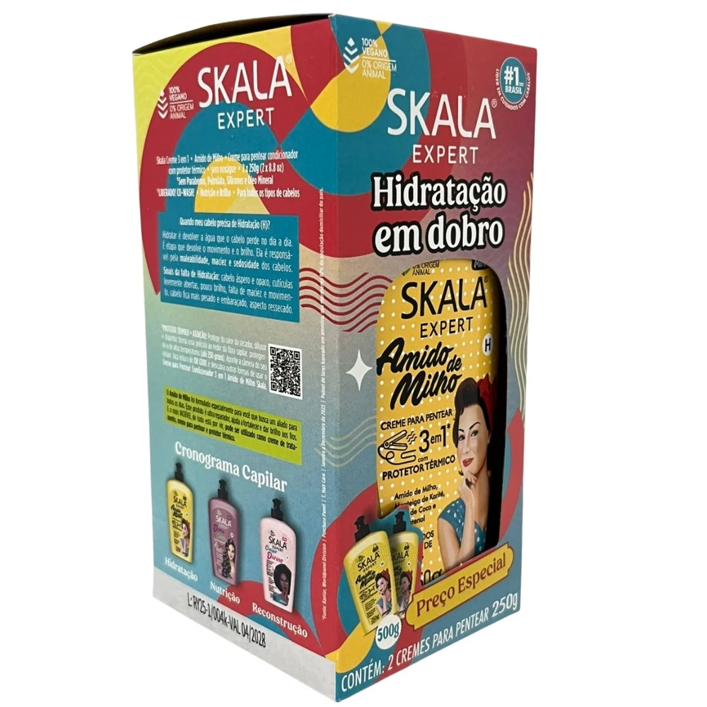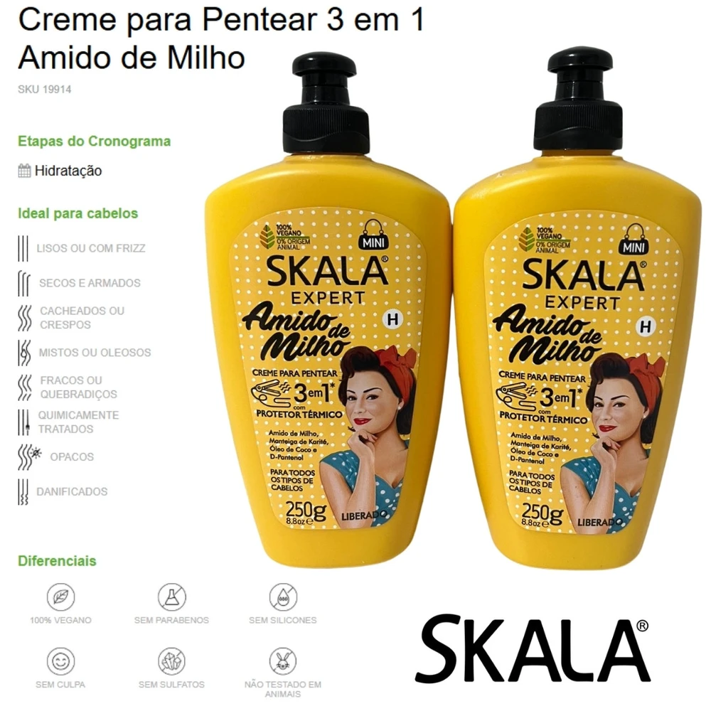 Skala Mini Creme 3 em 1 - Máscara de tratamento com protetor térmico e hidratante diurno – sem enxágue Amido de Milho