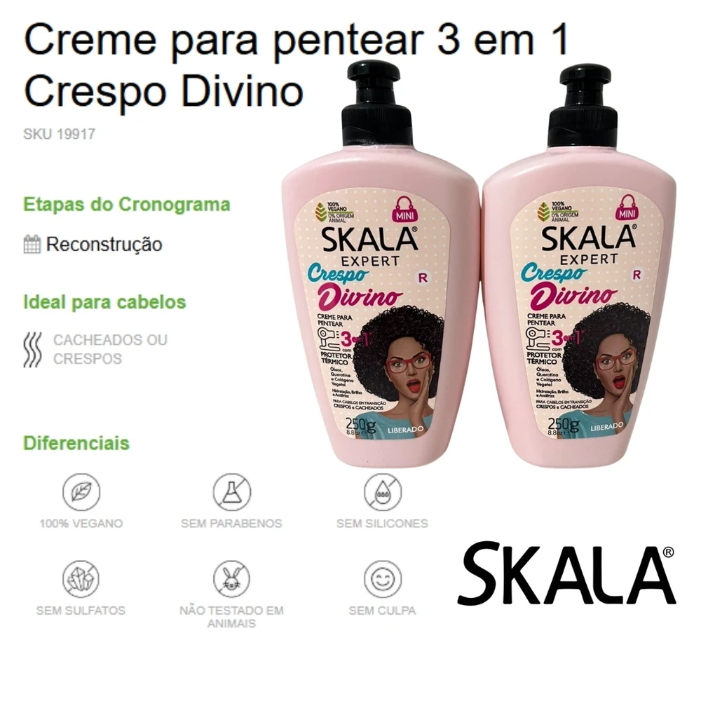 Skala Mini Creme 3 em 1 - Máscara de tratamento com protetor térmico e hidratante diurno – sem enxágue Divino Potão