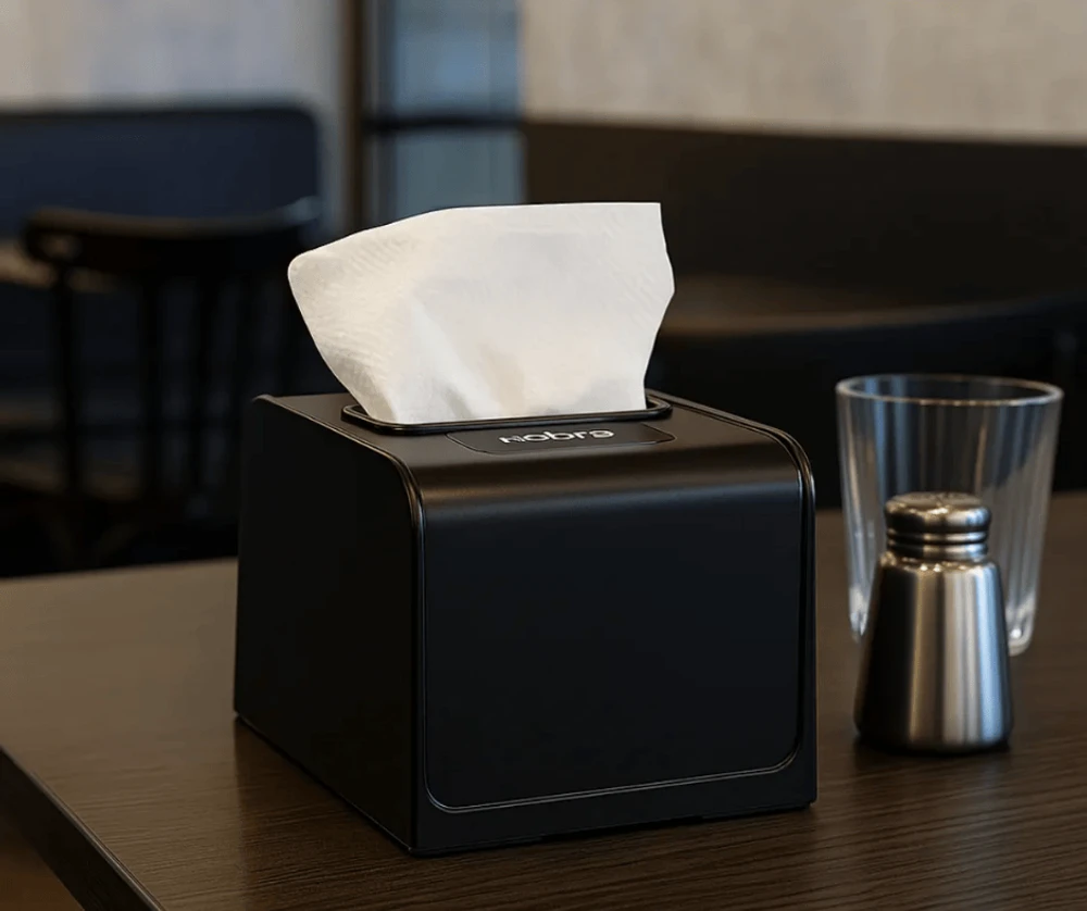 Projetado para reter os guardanapos com uma pressão adequada, ele evita que sejam levados pelo vento, ao mesmo tempo em que permite fácil acesso com um leve puxão ou pinçada.