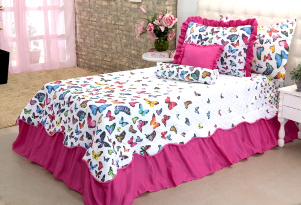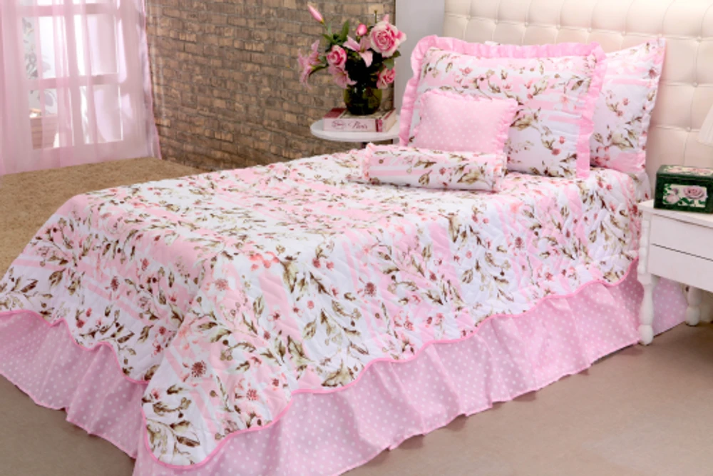 Kit 4 Pçs Cobre Leito Colcha Solteiro Belize com Babados