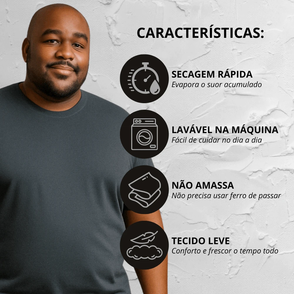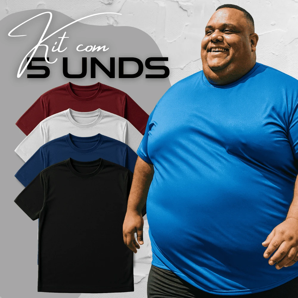 O kit é composto por 5 camisetas nas cores: Preto, Branco, Marinho, Vermelho e Azul.