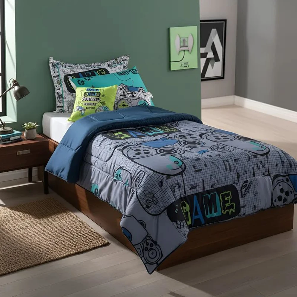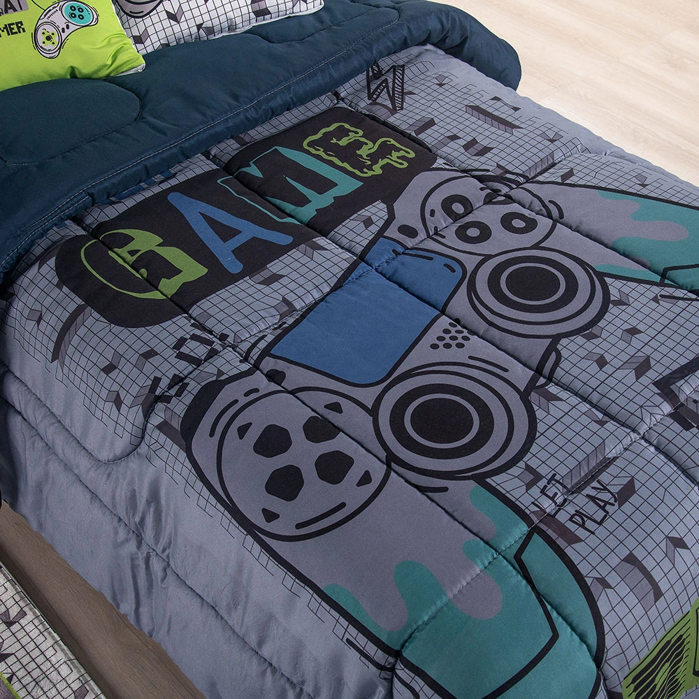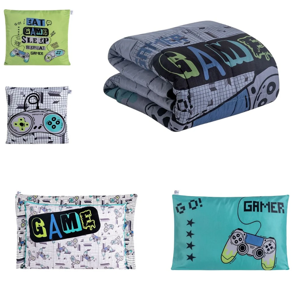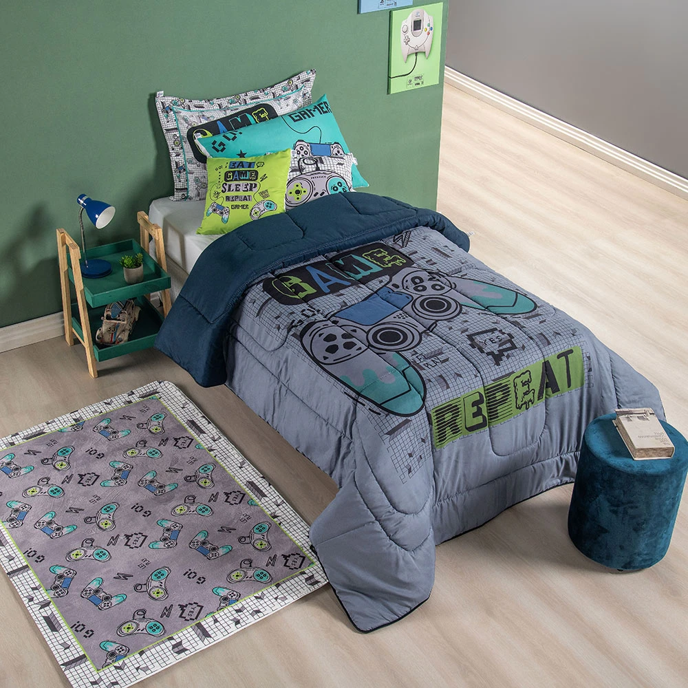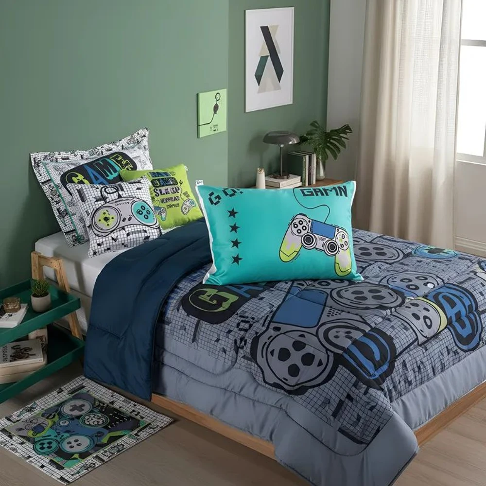 Kit 5 Peças Edredom Solteiro Infantil/Juvenil ? Hipercal 400 Fios Estampas Game e Ballerina