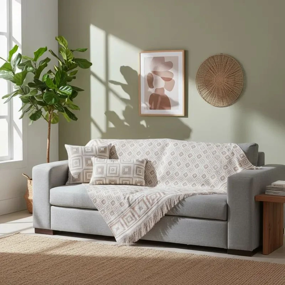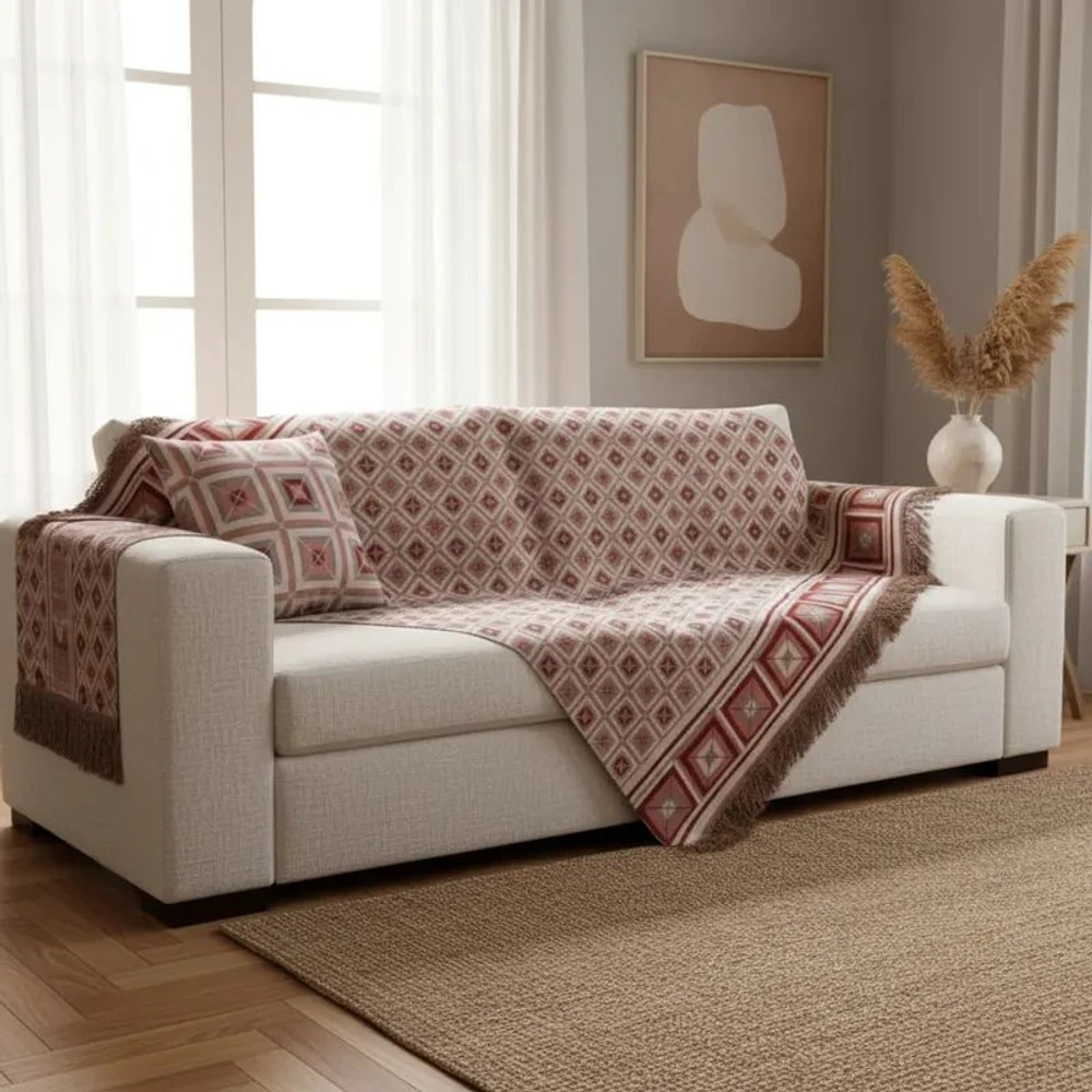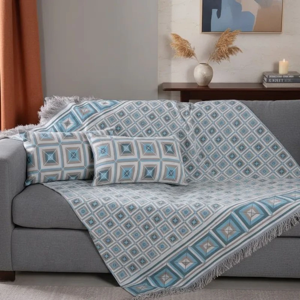 - Design exclusivo com padrões geométricos que valorizam qualquer sofá