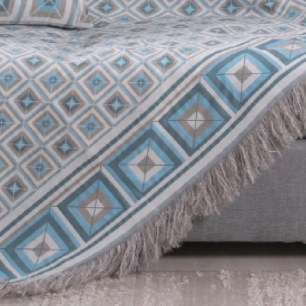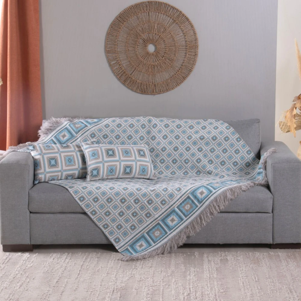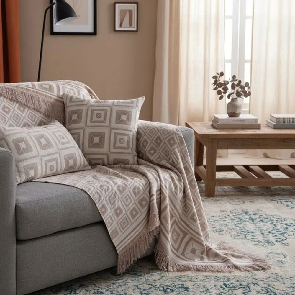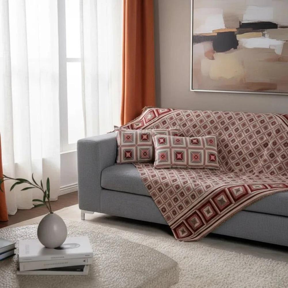 - Design exclusivo com padrões geométricos que valorizam qualquer sofá