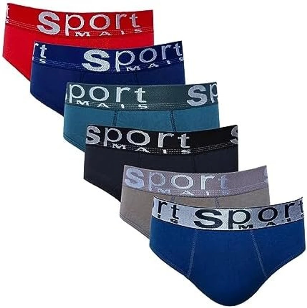 Kit 6 Cuecas Adulto Slip Tradicional Cavada Algodão Cós Largo