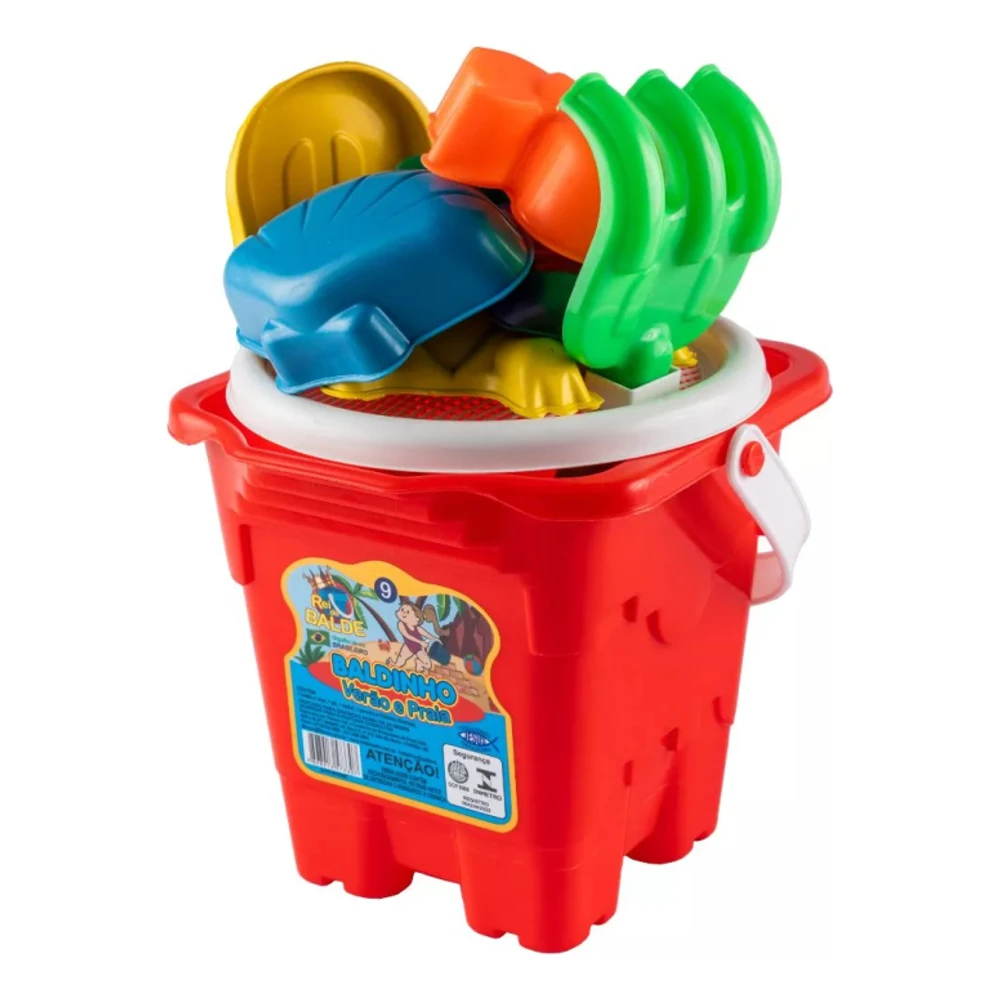 Baldinho Verão e Praia é um excelente brinquedo que ajuda no desenvolvimento da criança, despertando vários sentidos cognitivos: o tato do sentir ao manusear a textura da areia, a criatividade e imaginação ao usar as peças do baldinho que contém formas e cores diferentes, a coordenação motora para elaborar pequenos trabalhos na areia, promove também a socialização entre família e amigos e com tudo garante uma divertida brincadeira saudável, prazerosa e com muito aprendizado.Contém: 1 balde c/ alça, 1 pá, 1 rastel, 1 peneira, 4 bichos diversos.Este item possui sortimento variado e não é possível escolher a cor. A cor recebida pode variar conforme a disponibilidade do estoque.