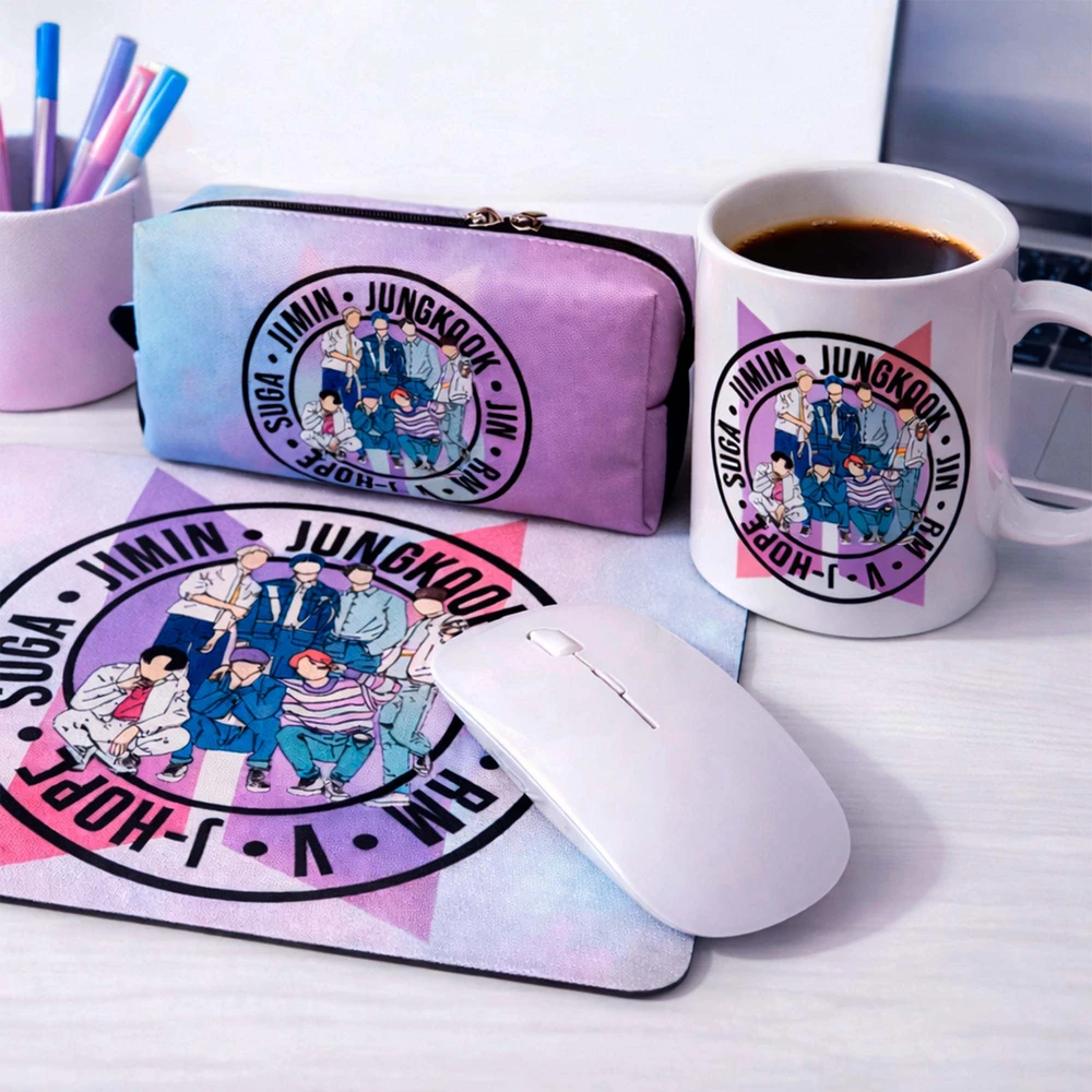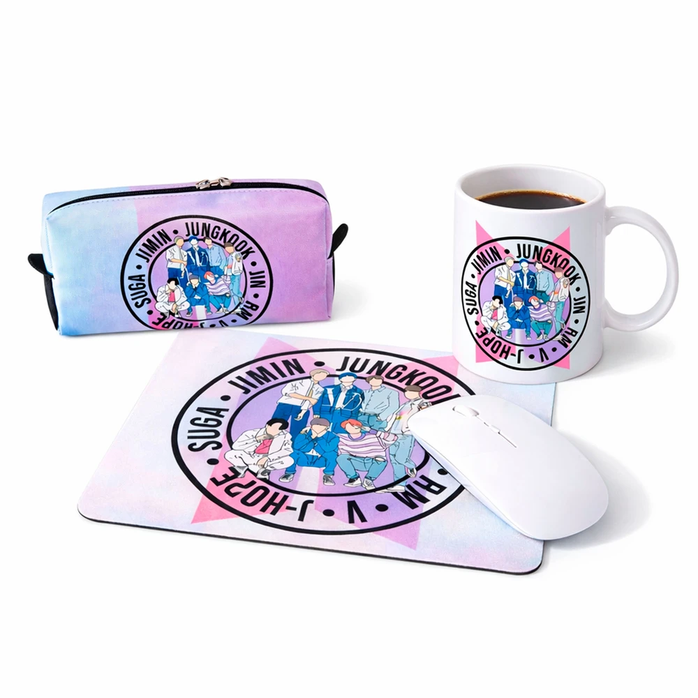 Leve a sua rotina de estudos, trabalho ou lazer para outro nível com este kit completo inspirado no BTS!
