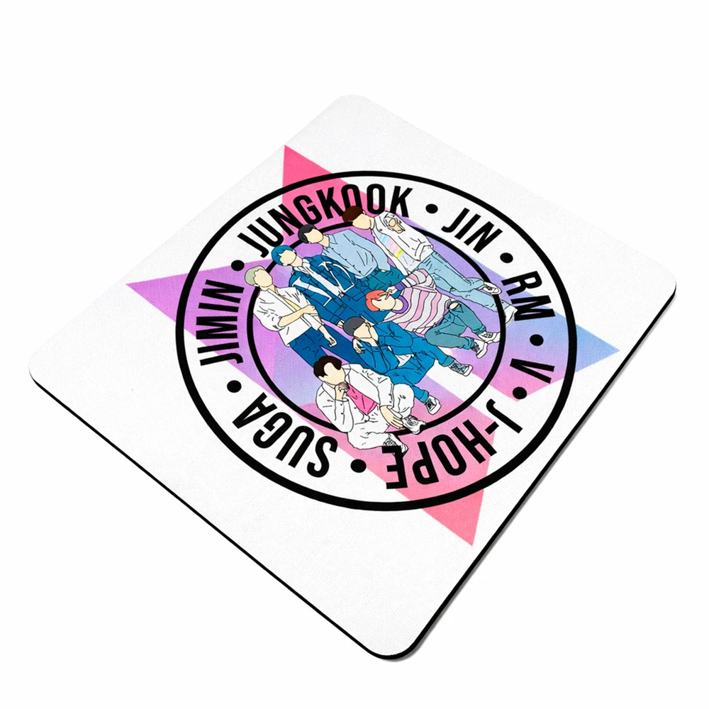 💜 O conjunto reúne três itens essenciais com uma arte exclusiva icônica do grupo, criando uma composição harmoniosa e perfeita para sua mesa: Mousepad Integrantes Branco Superfície macia, base antiderrapante e estampa em alta definição para garantir conforto e precisão nos movimentos. Especificações: