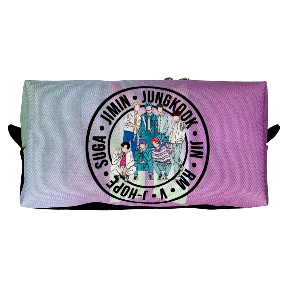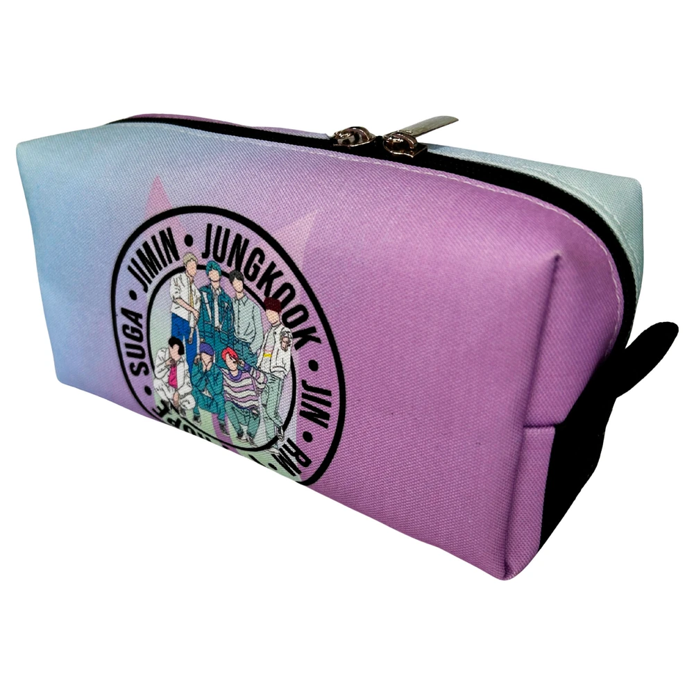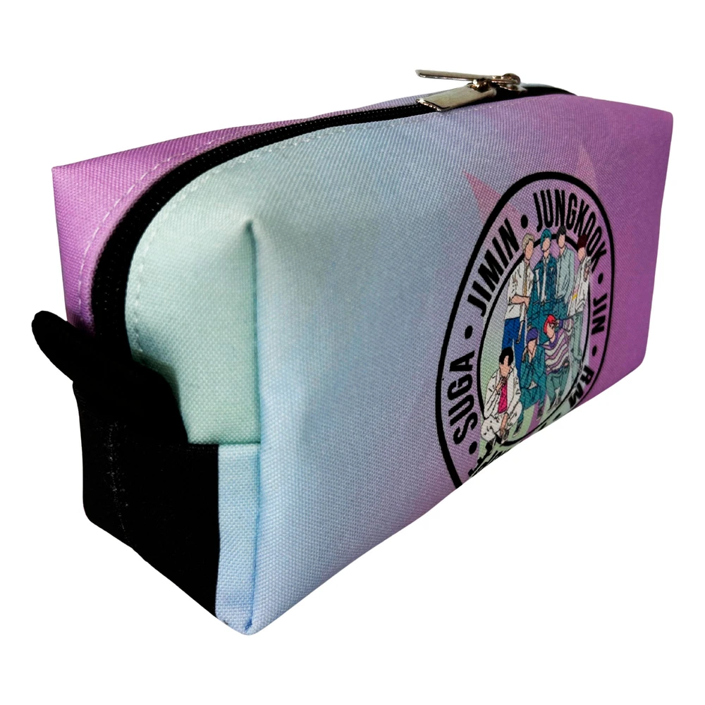 Topo: Neoprene Estojo Box Médio BTS Integrantes Ideal para guardar canetas, lápis e acessórios, com tecido resistente e acabamento de qualidade. Especificações: