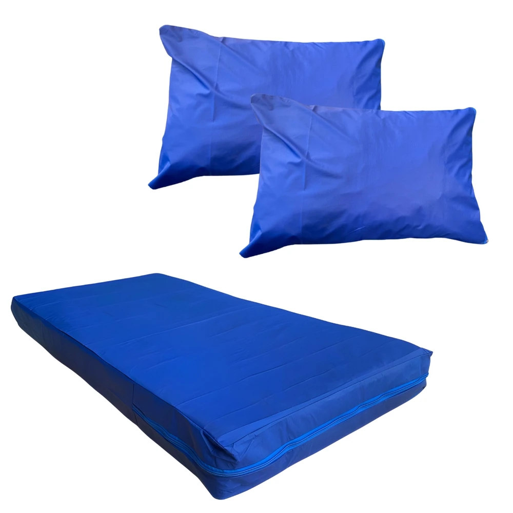 Kit Capa Para Colchão Solteiro Hospitalar Impermeável Com Ziper + 02 Capas Travesseiro Impermeável azul
