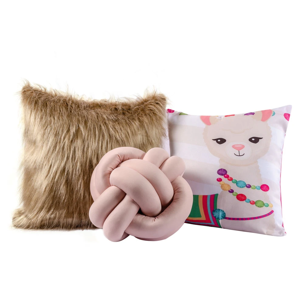 Kit Capas de Almofadas c/ Nó Plush Lhama Caqui 03 Peças