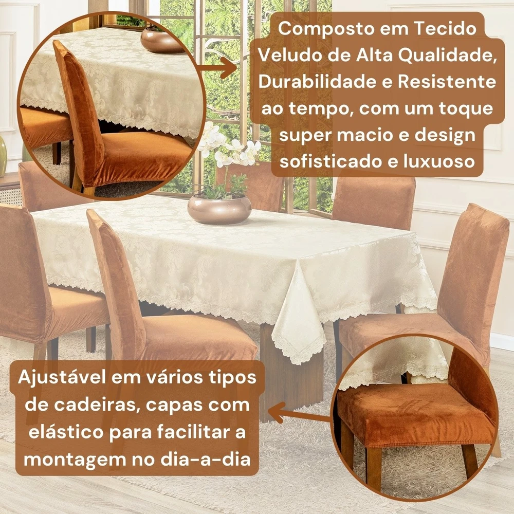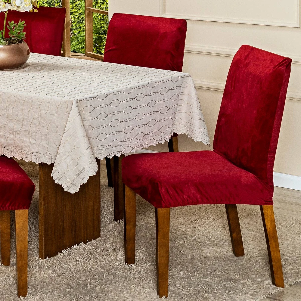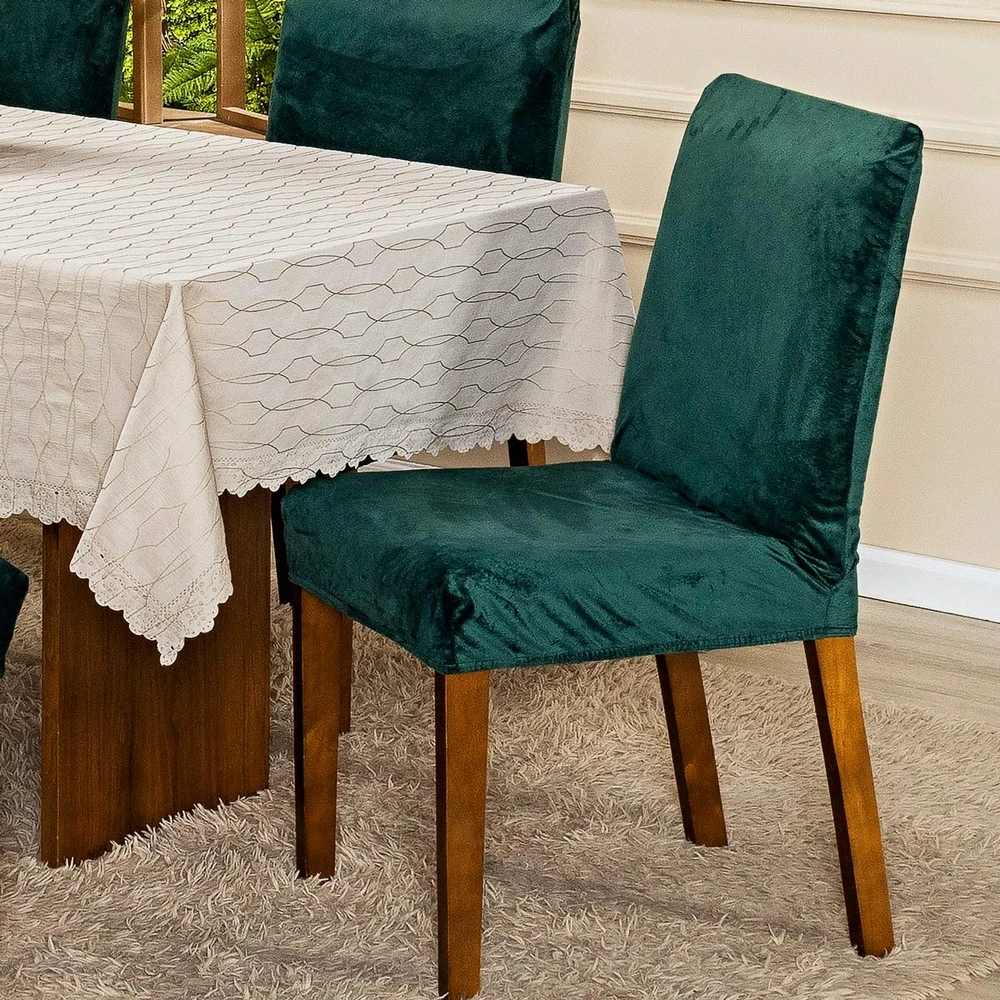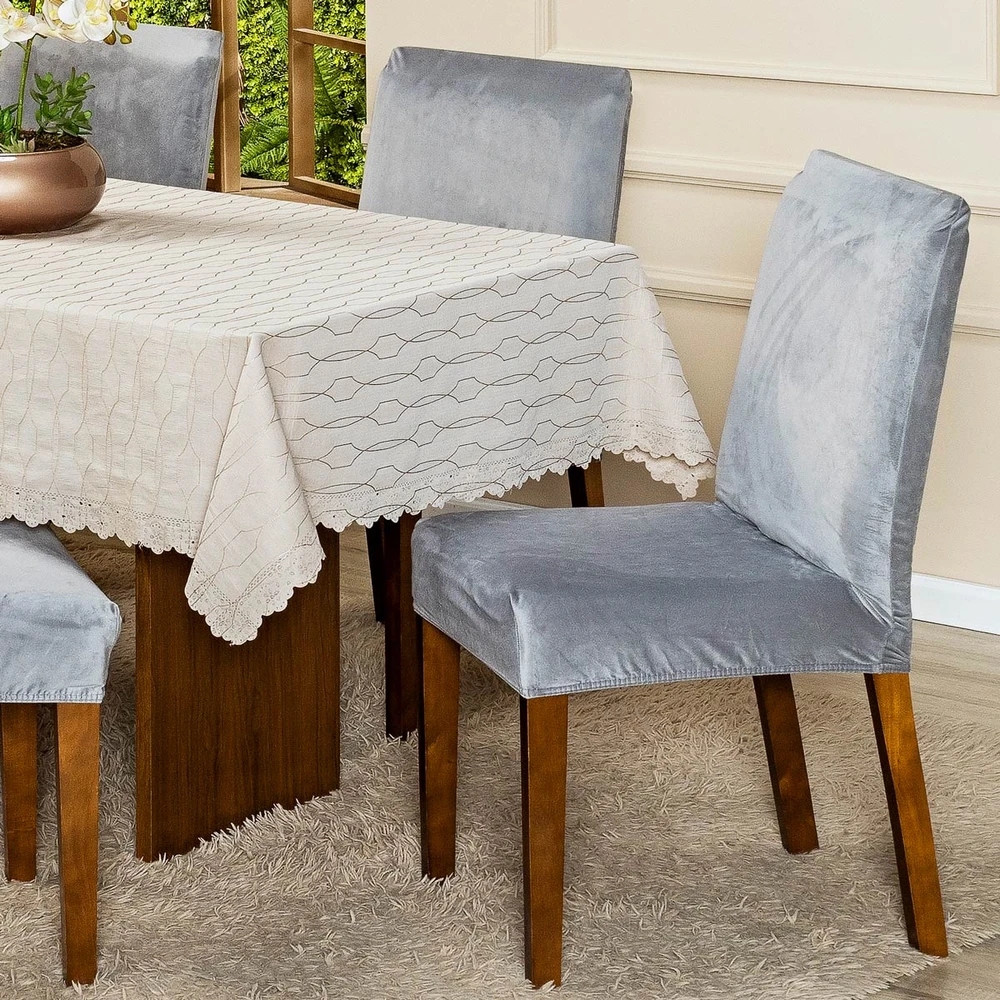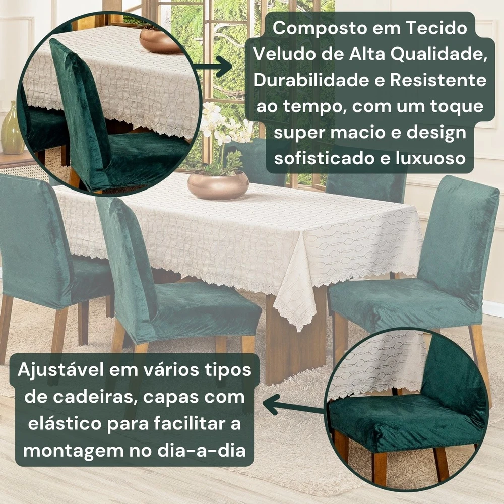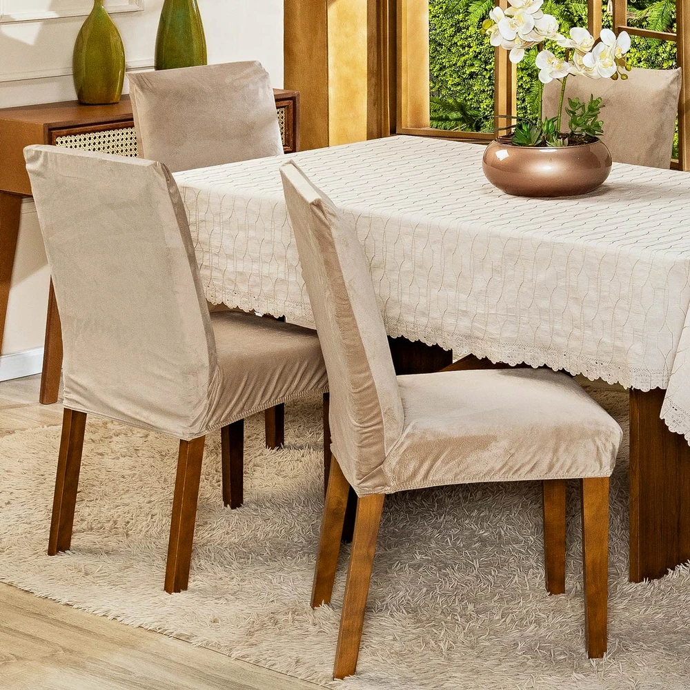Fácil de Colocar: A capa pode ser facilmente colocada e retirada, permitindo uma rápida renovação do visual das suas cadeiras sempre que desejar.