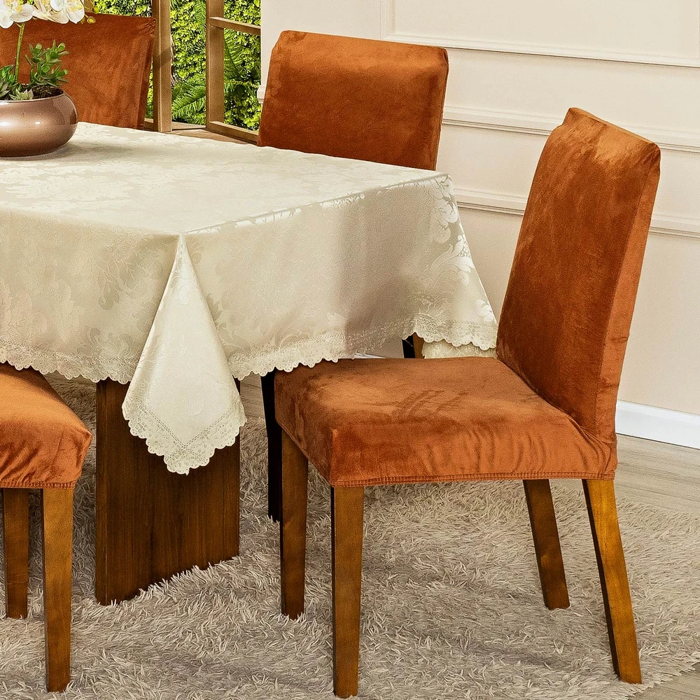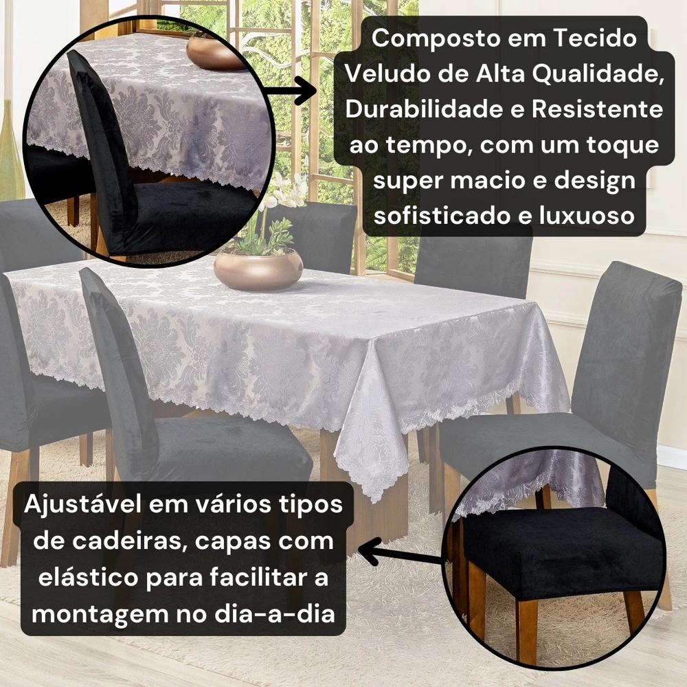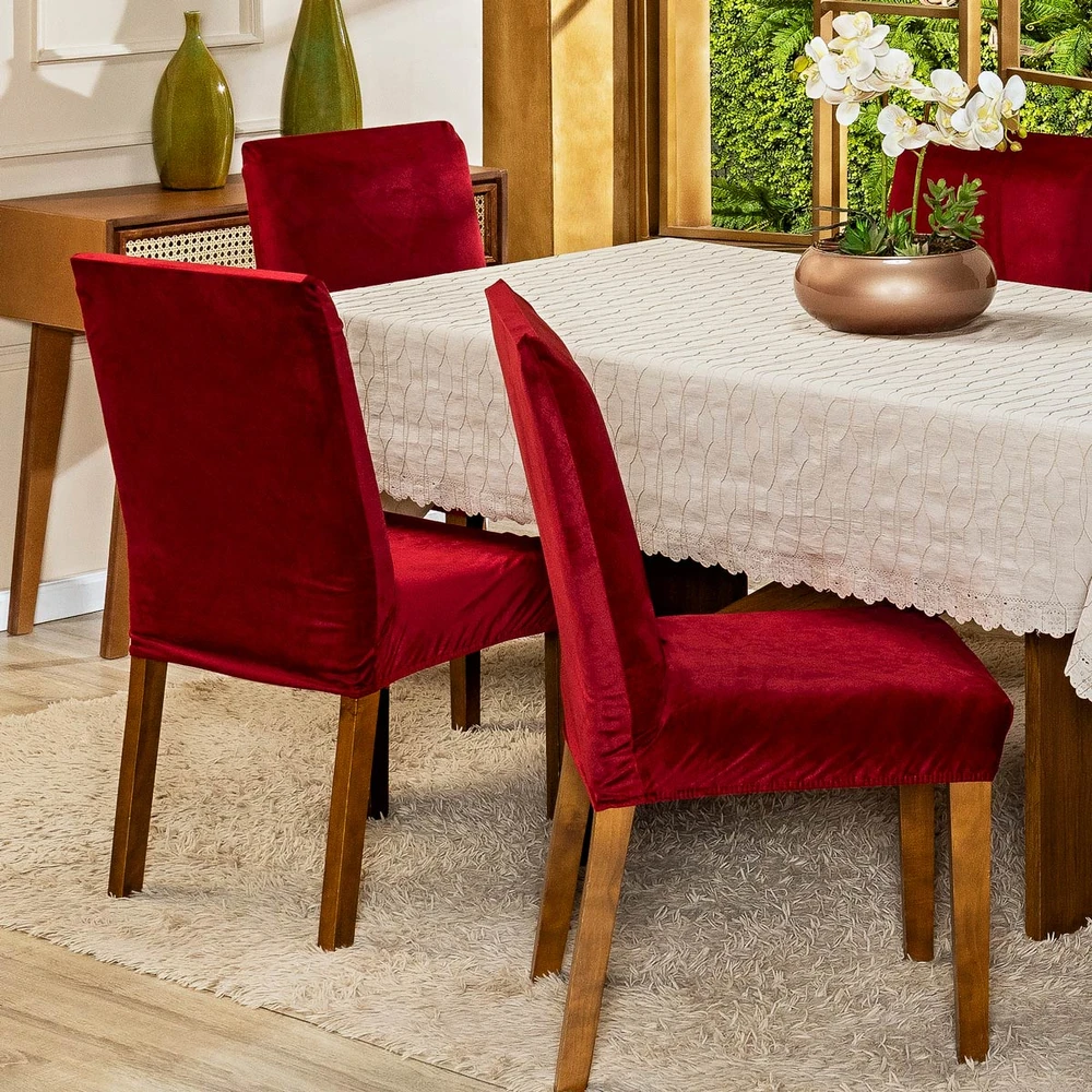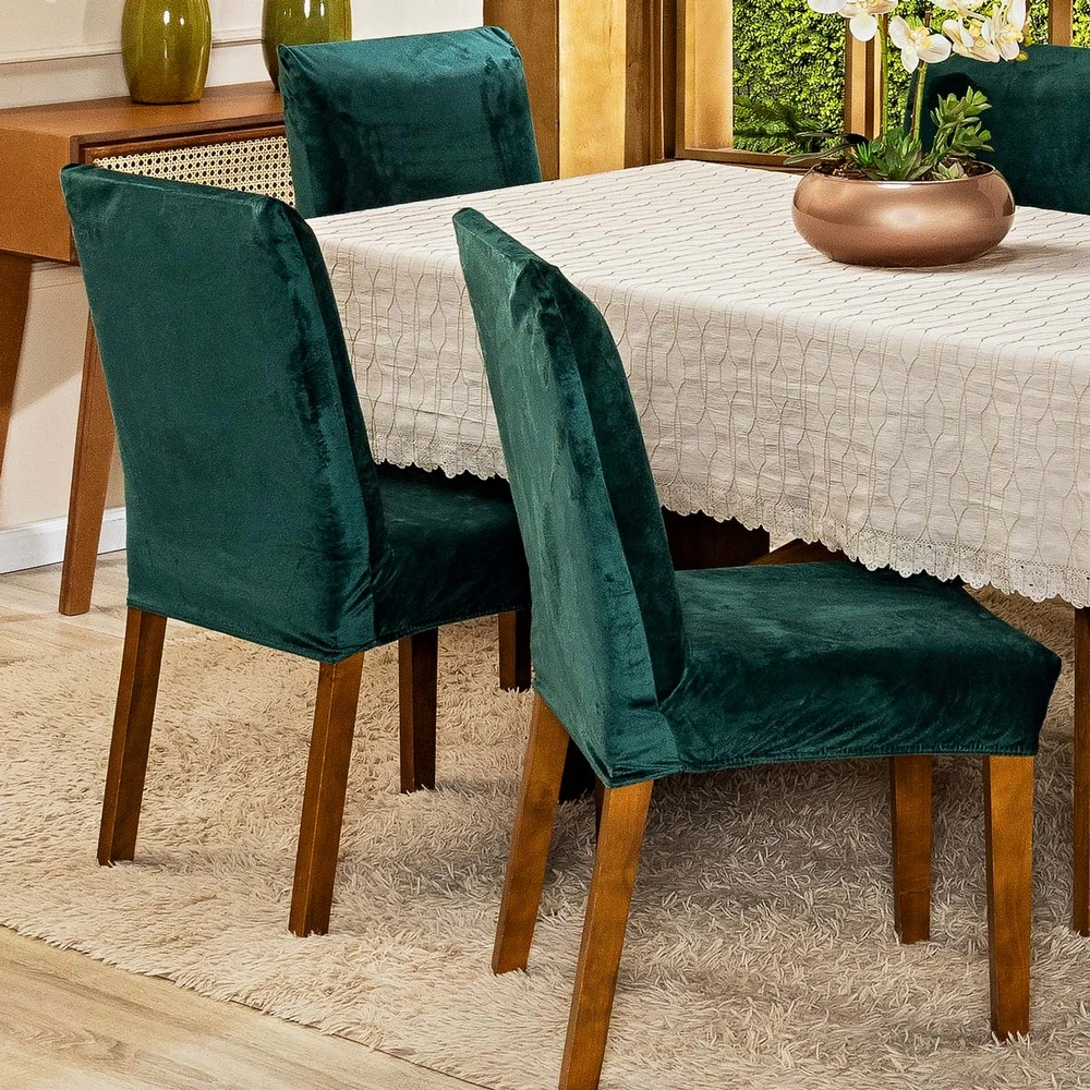 Fácil de Colocar: A capa pode ser facilmente colocada e retirada, permitindo uma rápida renovação do visual das suas cadeiras sempre que desejar.