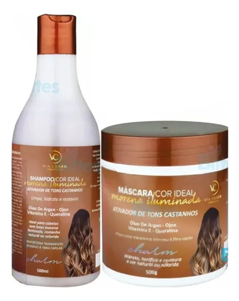 Descubra o Kit Capilar Matizador Morena Iluminada Via Charm, especialmente formulado para realçar e ativar os tons castanhos dos cabelos morenos. Composto por shampoo e máscara de 500g, ambos enriquecidos com óleo de argan, ojon, vitamina E e queratina, proporciona hidratação profunda, tonificação e restauração da cor natural ou colorida. Ideal para quem busca cabelos iluminados, sem amarelados indesejados, e com brilho intenso.